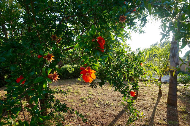 Equally wonderful is the courtyard or garden. Hedges of rosemary and lavender that you brush past and leave a trail of wonderful scents, strawberry plants low on the ground ripening in the sun and pomegranate trees laden with flowering fecundity.