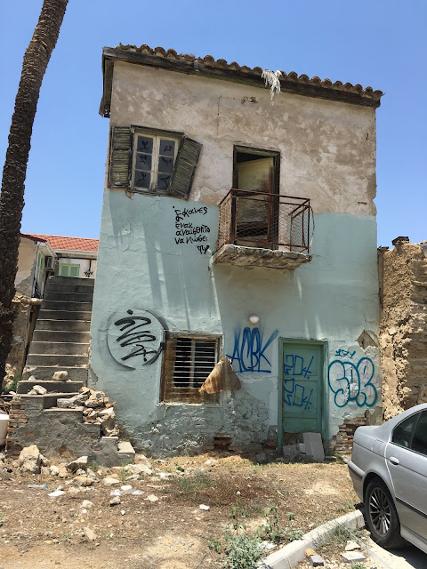My sister and I wandered through the old streets of Nicosia which have now found new life, with little coffee shops and restaurants sprouting out everywhere, where Armenian tradesmen once sold their cashmeres and their silks to my mother and her friends. It is wonderful to see the transformation and regeneration of these areas but equally disturbing to witness them ravaged in a new brutal and unacceptable way. Perhaps these signs are not so obvious to those who live in Cyprus day after day but for me coming in as an outsider it was so very shocking and harsh. The whole of the old city is covered with horrible, horrible graffiti. It is not just on gates or walls, garages and fences but on old sandstone heritage buildings of considerable importance which have been vandalised and covered with painted scrawls which say nothing other than that these disrespectful scrawlers have no understanding of their culture and heritage, have no appreciation for the beautiful architecture of old buildings and even more galling have nothing to say for themselves or to offer to us.I could not bear to take photos, it was too upsetting but I think Jill a fellow blogger https://readingthebooktravel.com/nicosia/ sums it up eloquently in this photo from her blog.