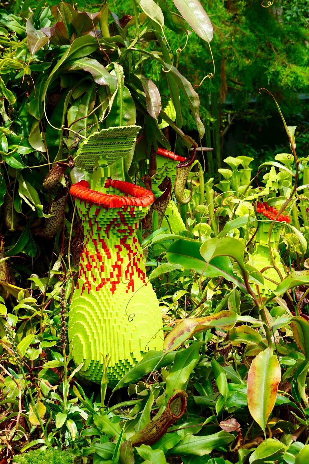 There are educational films, stalactites and stalagmites, environmental messages, and information about rare and endangered plants even Lego displays of some note. I leave you with a pitcher plant made entirely of Lego. Somehow it sits well amongst the real ones does it not ?