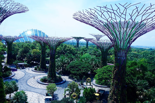 The Skyway which is a path at about 22 metres is a good way to appreciate the Supertrees but also the Gardens. If you can stick around for the light shows, do so, they are on at 7.45 and 8.45 pm.