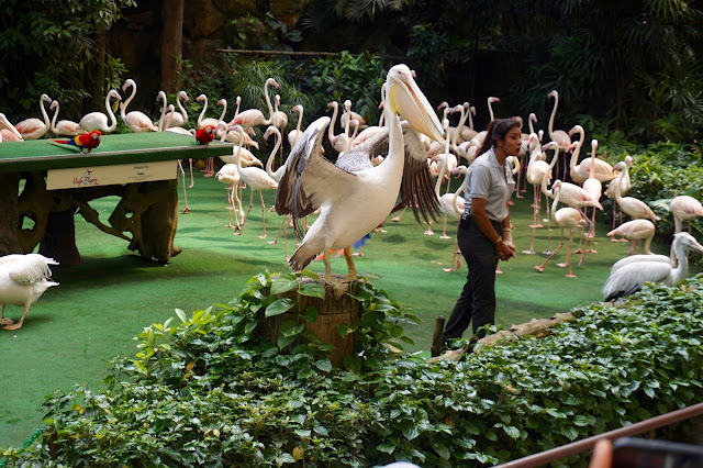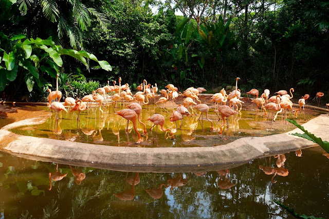 This is my last post from my short trip to Singapore though there is a lot more ground to cover. Some will have to wait for another trip. A memorable visit was to the Jurong Bird Park and even though we are not happy to see birds in captivity this is an aviary which is immensely rich and varied and we really enjoyed seeing the Asian birds but also the macaws from South America, the parrots and the hornbills, not to mention the shade of the flamingoes which ranged from this intense pink orange to the softer pink ones who pranced across the stage in the show. There are clearly marked paths and even a little tram to transport you around if you dont want to walk. For more information and to see what is on at the park go to https://www.wrs.com.sg/en/jurong-bird-park/