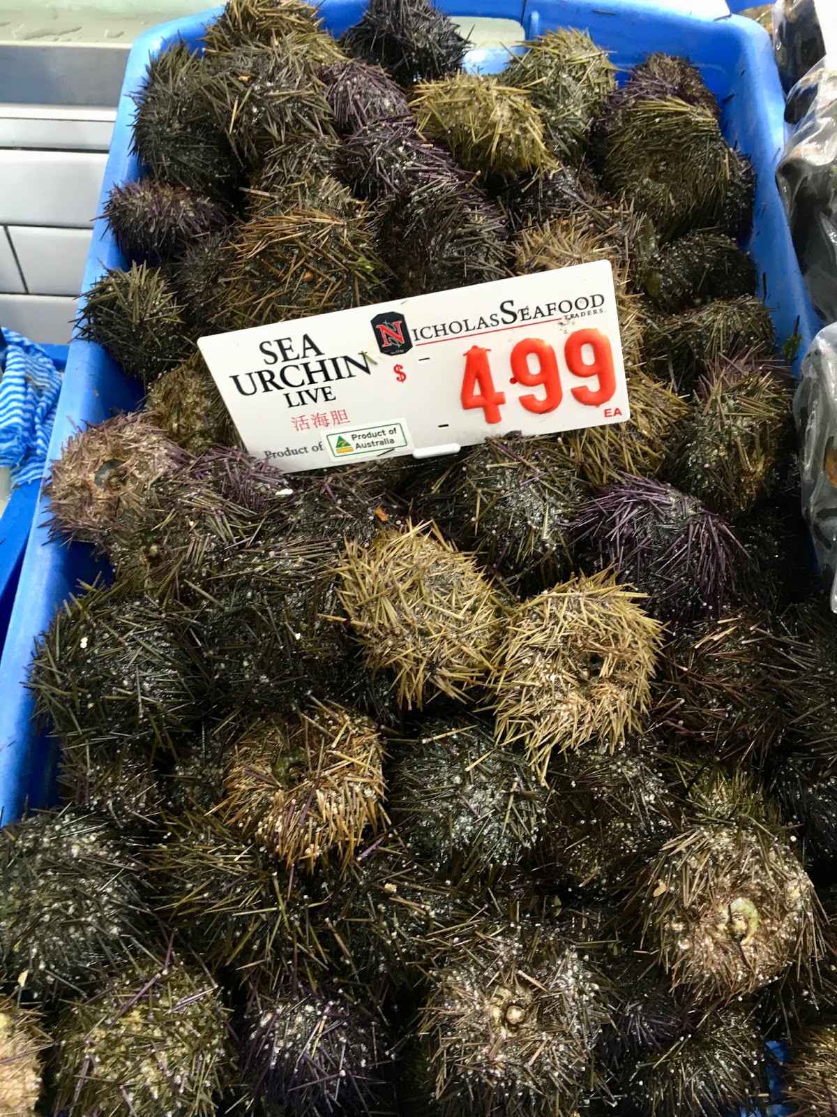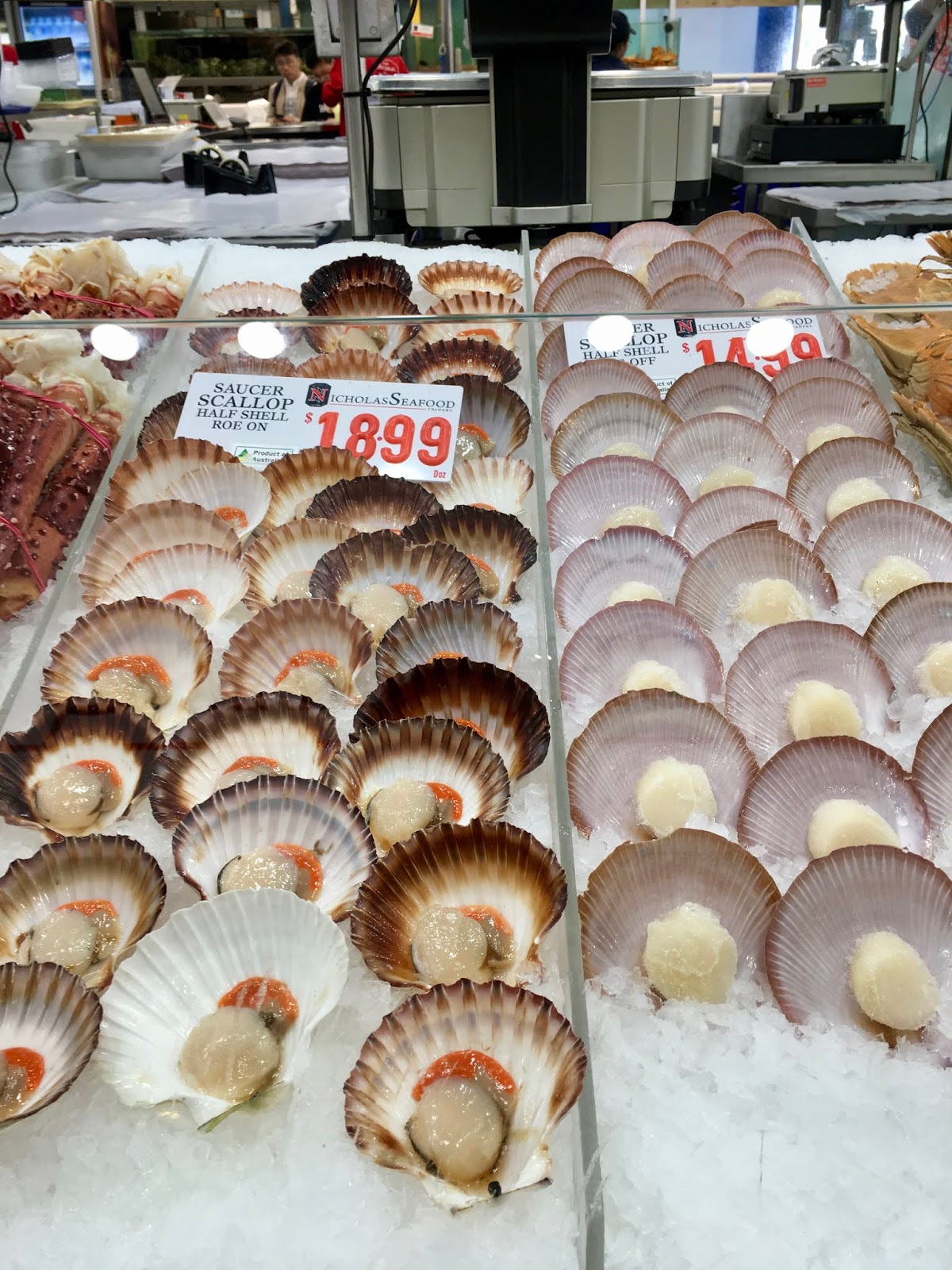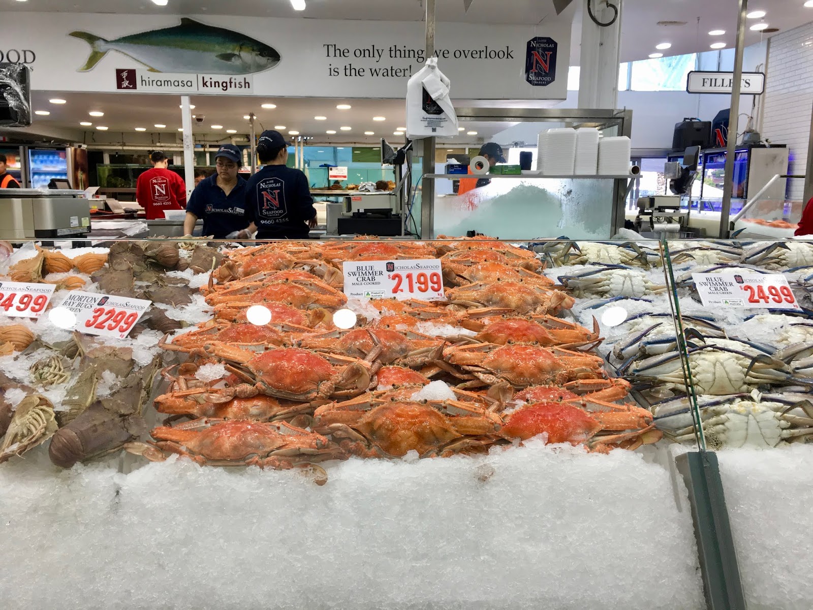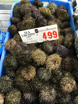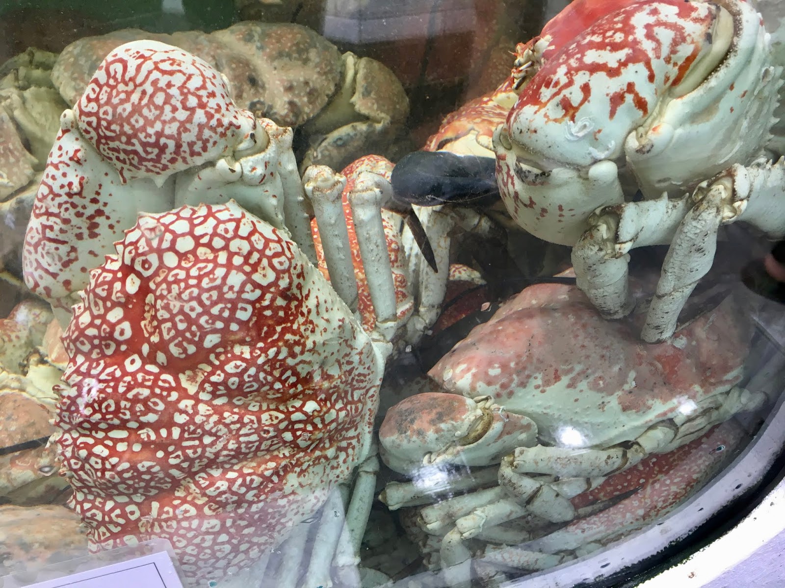 A highlight of our time in Sydney was a visit to the Sydney Fish Market. This is located at the end of the Pyrmont Peninsula and is a large area where all kinds of fish, shellfish, abalone, urchins and oysters are sold fresh or cooked. There is an enormous variety to choose from and it is an extremely popular venue for a lot of Asian families on a Sunday. If you want to see it on a less crowded day a weekday is probably best. We loved the variety and the freshness of it all. Here are a few of the items on sale with crabs of all sizes and types. You name it, they had it.