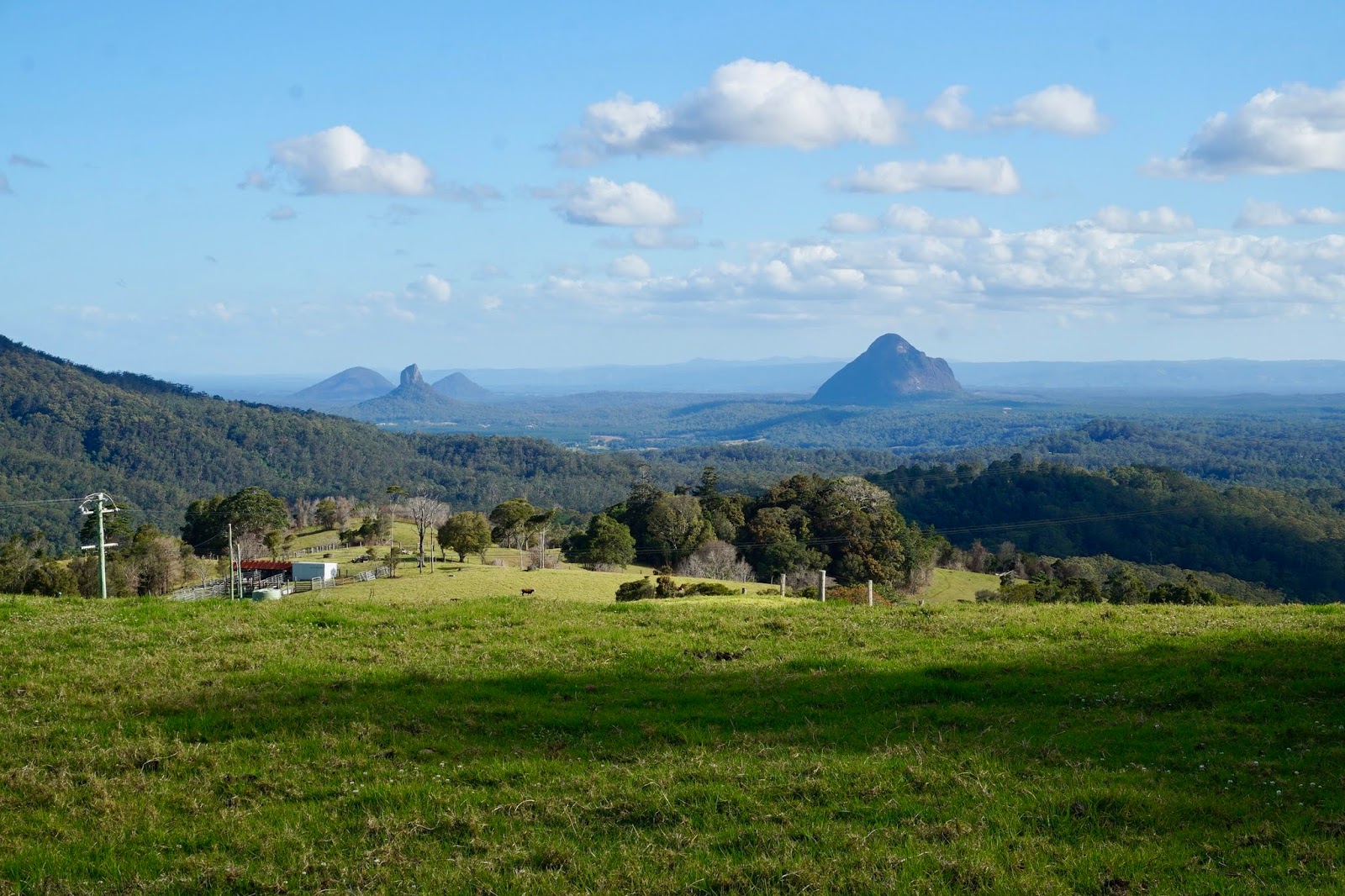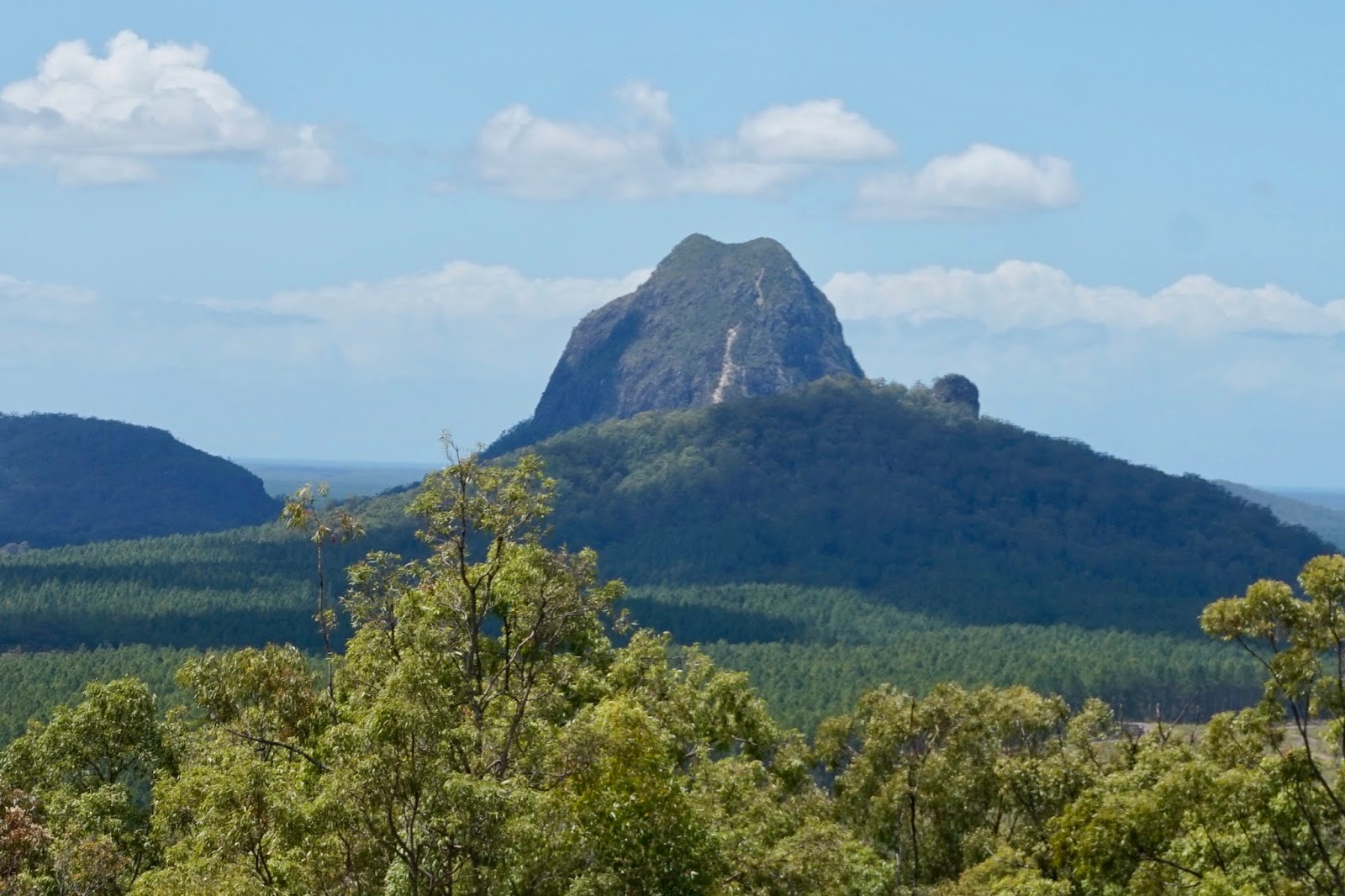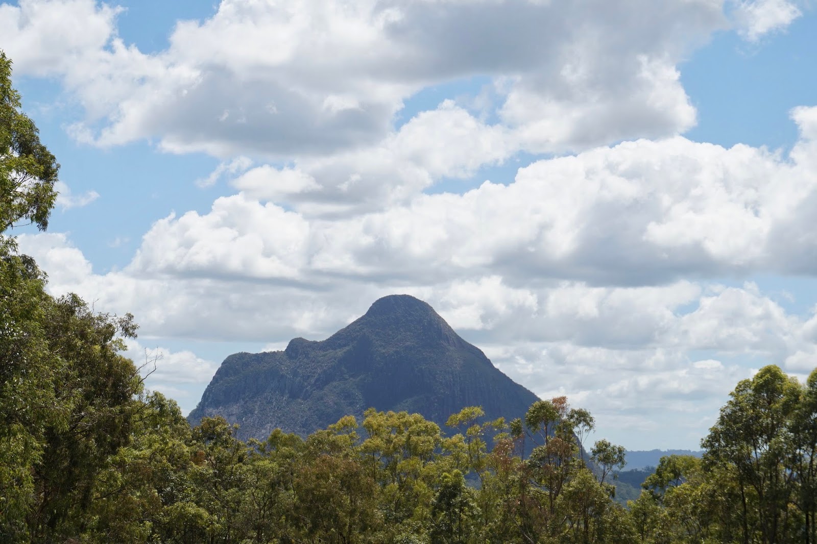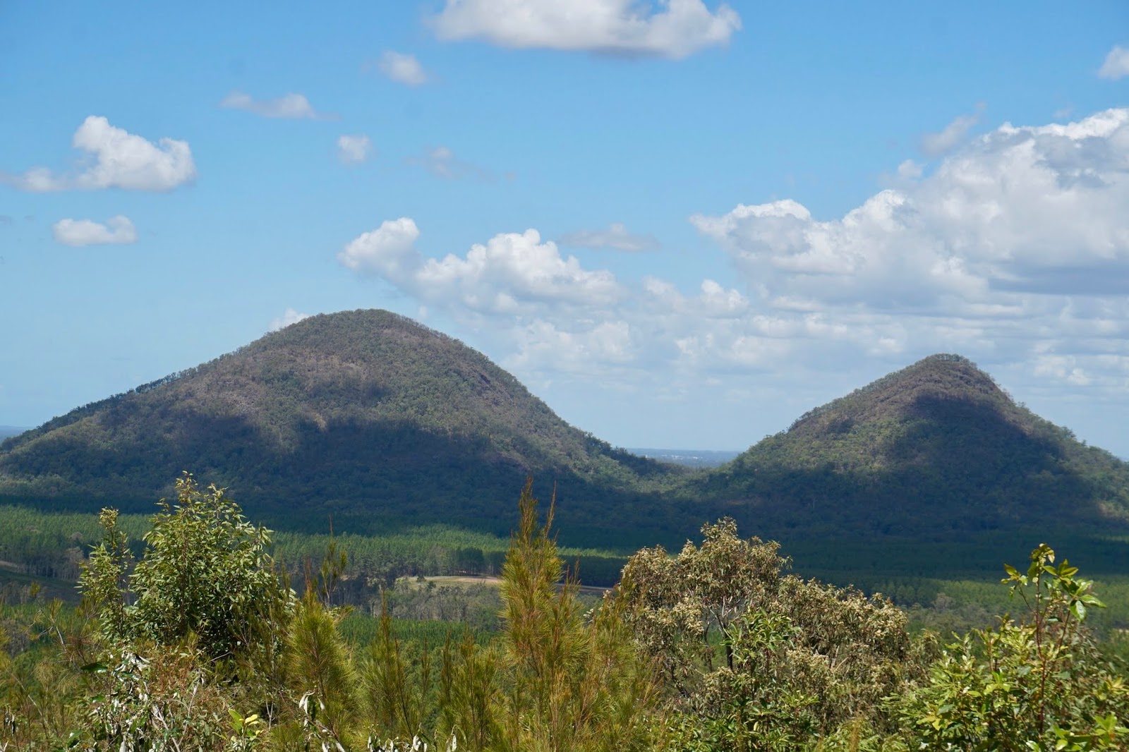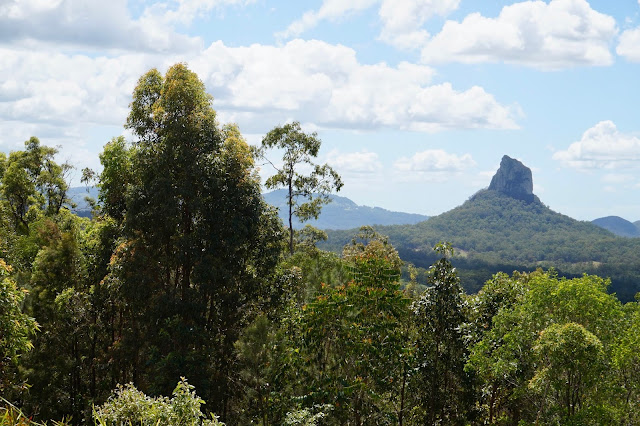 Yesterday was the Queen’s Birthday in Queensland. She is a lucky lady. She could travel the world and be feted every day could she not? So to celebrate we headed to the hills and specifically to the Glasshouse Mountains Lookout – this was where Captain Cook in 1770 looked out onto the Queensland plain and saw these mountains popping up and thought, we are told, of his glass furnaces back in Yorkshire and he called them the Glasshouse Mountains. They are actually more accurately