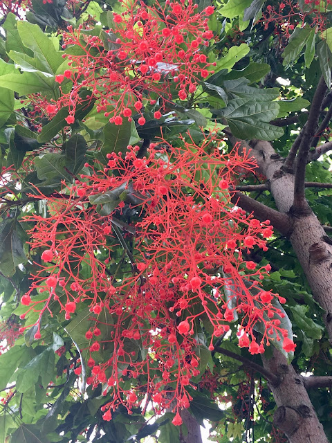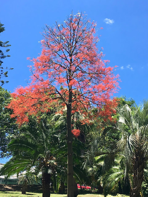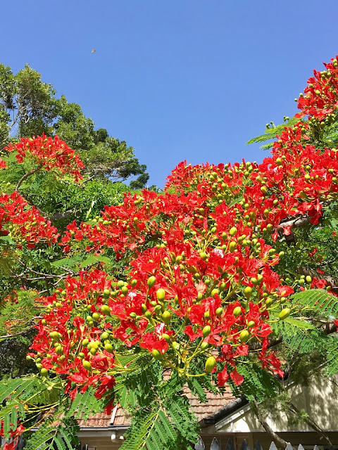 I have been counting down the days. To blog before the 1st would be a bit of a sacrilege and lets face it, we have plenty of time to get into the spirit and enjoy the season.The first of December is the official start of summer. You may think it had shifted to November this year, as the temperatures have been up and the rain has stayed away. But the warmth has also meant that the city is ready for its own very special Xmas decorations, without the need of a single socket, solar panel, plastic bauble or wiring. Here it is all unfolding fabulously before our very eyes. Xmas colours in abundance, trees with their own silver xmas lights up top, candelabras in hues of purple and green, buds so prolific you forget there is a drought, pom-poms of such delicacy, red streamers and coral connections, and a chance to turn our attention to it everywhere we look.