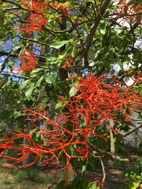 I have been counting down the days. To blog before the 1st would be a bit of a sacrilege and lets face it, we have plenty of time to get into the spirit and enjoy the season.The first of December is the official start of summer. You may think it had shifted to November this year, as the temperatures have been up and the rain has stayed away. But the warmth has also meant that the city is ready for its own very special Xmas decorations, without the need of a single socket, solar panel, plastic bauble or wiring. Here it is all unfolding fabulously before our very eyes. Xmas colours in abundance, trees with their own silver xmas lights up top, candelabras in hues of purple and green, buds so prolific you forget there is a drought, pom-poms of such delicacy, red streamers and coral connections, and a chance to turn our attention to it everywhere we look.