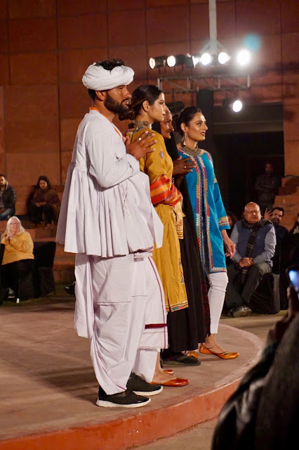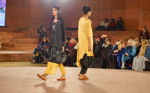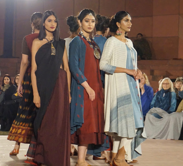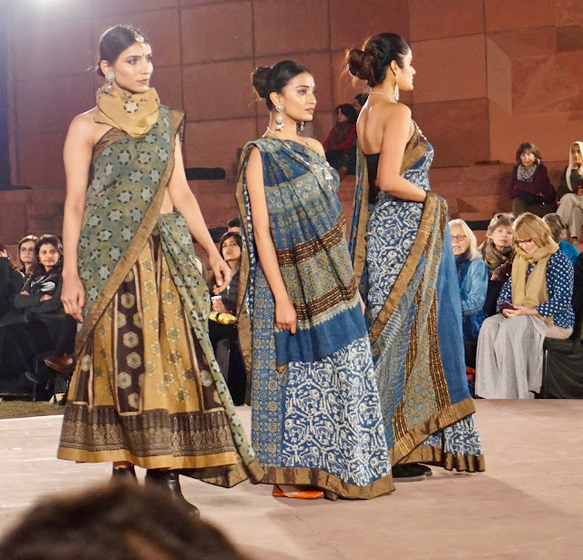 Indian fabrics are spectacular in themselves but when they are taken and lovingly transformed by talented designers into the most appealing tunics, saris and shalwar kameezes exhibiting Ajrakh block design, embroidery and weaving, that is when you regret that extra naan and the jelabis in syrup you wolfed down at lunch. Not that I could for a moment entertain the thought of wearing any of the amazing clothes we saw at the fashion show organised by the Festival. Dreaming about it, now that is another matter!