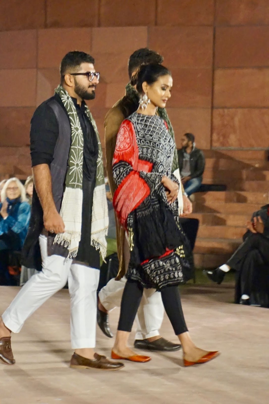 Indian fabrics are spectacular in themselves but when they are taken and lovingly transformed by talented designers into the most appealing tunics, saris and shalwar kameezes exhibiting Ajrakh block design, embroidery and weaving, that is when you regret that extra naan and the jelabis in syrup you wolfed down at lunch. Not that I could for a moment entertain the thought of wearing any of the amazing clothes we saw at the fashion show organised by the Festival. Dreaming about it, now that is another matter!