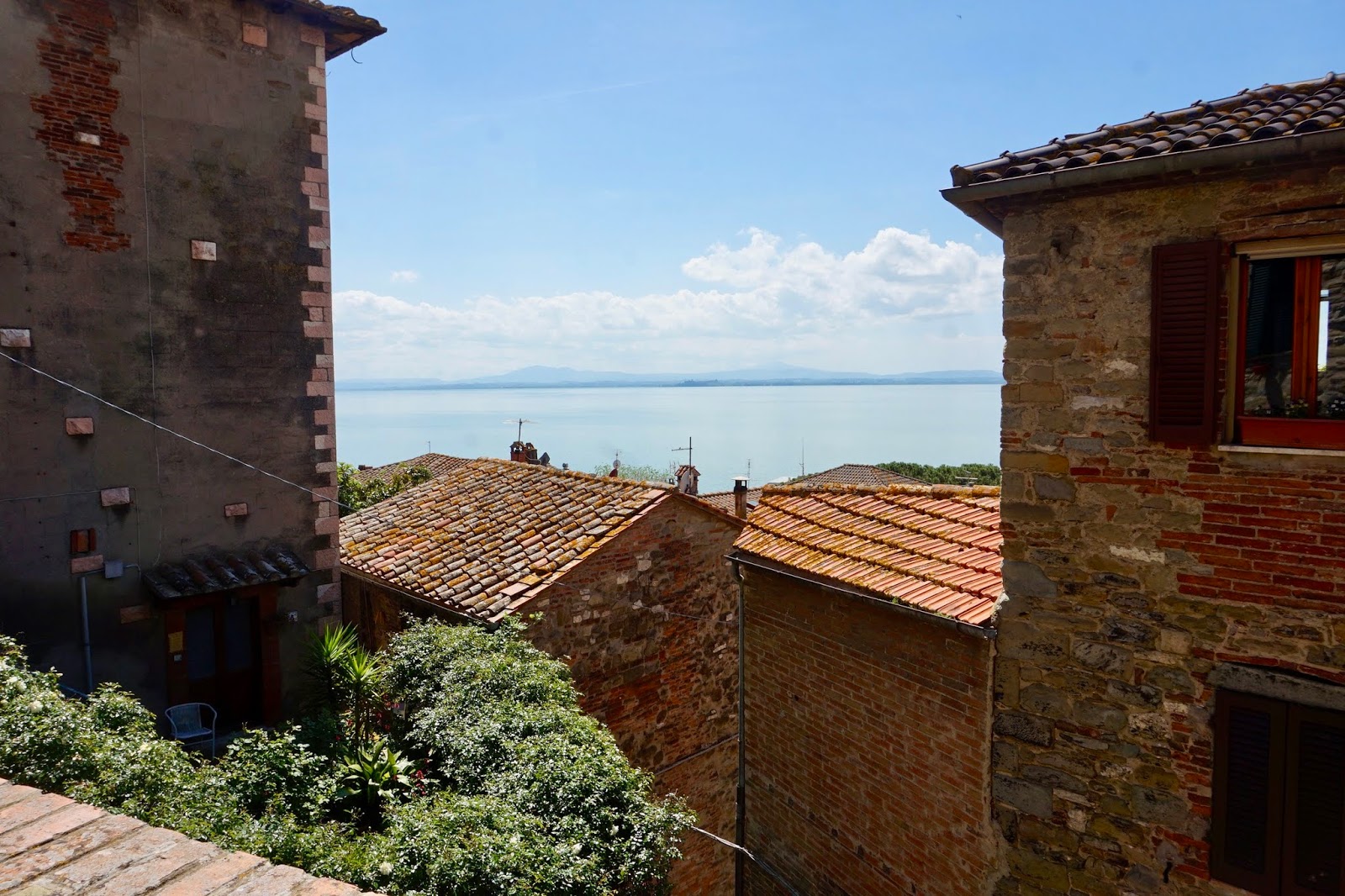 The valleys are luscious and showing signs of ripening, the hills an intense green with great conifers, pines, cedars, plane trees and lime trees. Best of all the roadsides are bursting with poppies and daisies and many orchids. The vines are neat, and clash brightly with the forest backdrop. Having arrived in Perugia we made our way to Lake Trasimeno, for a delicious bruschetta pommodore and bresaola with rocket and parmesan and fresh blood orange juice. We explored the little village and walked through the streets. From there we drove the back roads through the mountain villages to our destination, taking time to stop and admire the views and the flora.