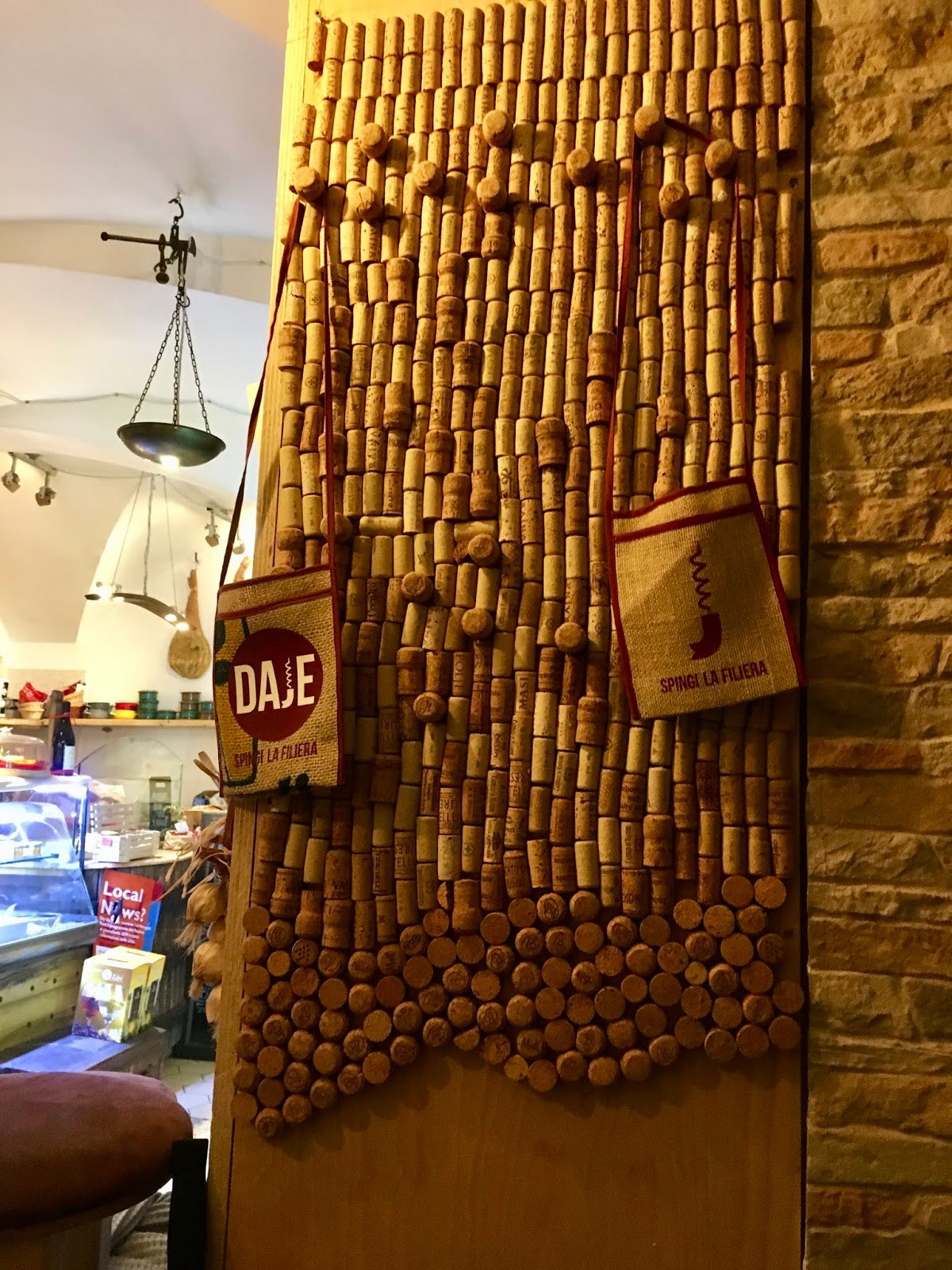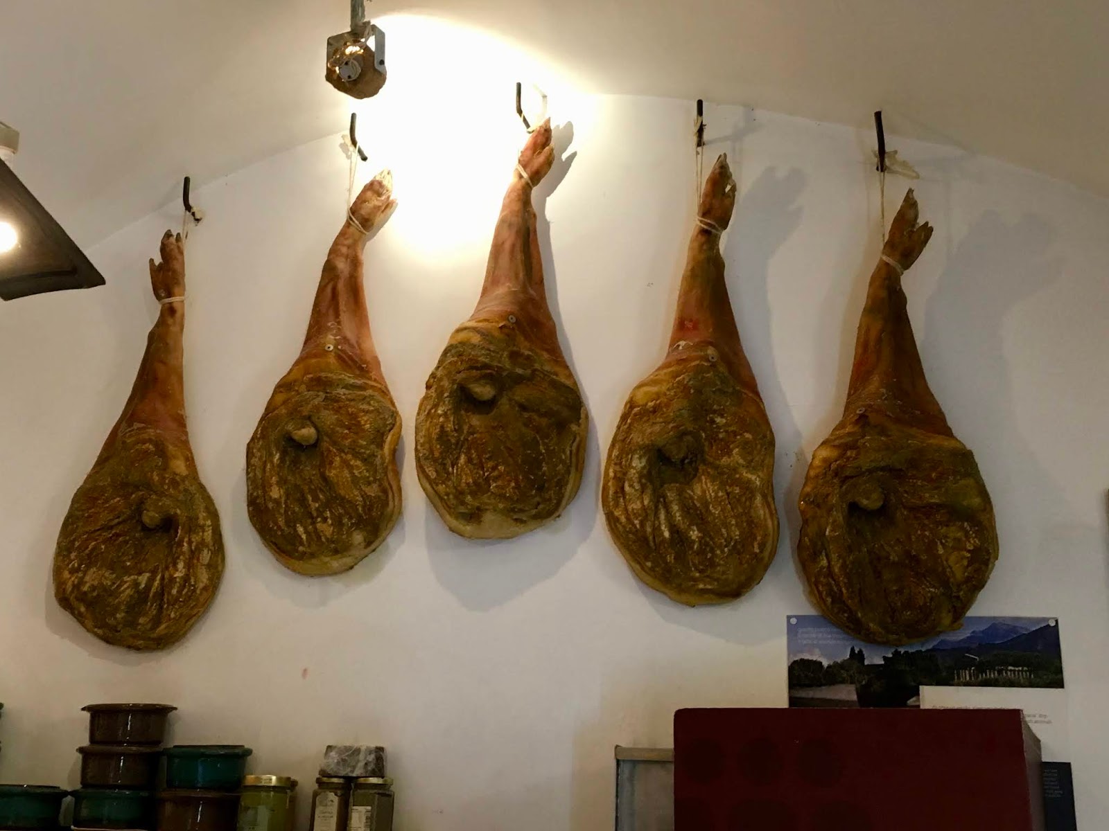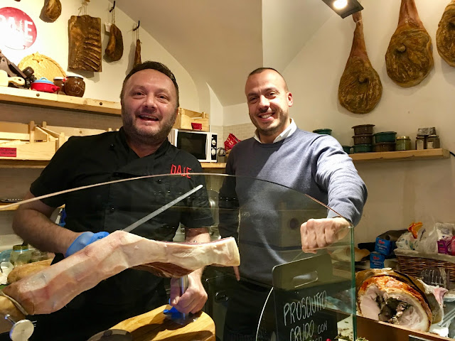 The imposing griffin and lion stand out on this church. The alleyways are full of small bars and eateries with simple but delicious fare. This is where we ended up … with the local rugby team, lots of good wine and delicious cheeses and hams.