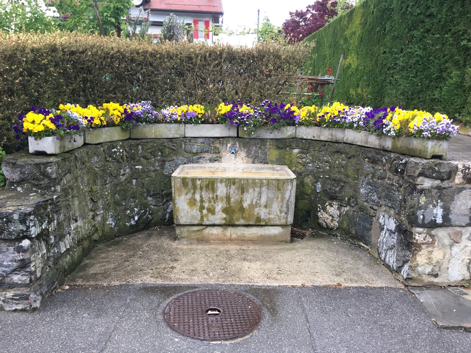 Wandering in my old neighbourhoods I come across our village fountain, or one of them. Always beautifully decorated with seasonal flowers, houses and gardens displaying the precision of form and neatness that seems to be the norm here. Nothing out of place, not even the firewood which is stacked like a perfect wall – exactly as I remembered it in the farmhouse round the corner from the house, all those years ago. Such familiarity which comforts us as we walk by, the new houses and constructions fueling us with curiosity and questions about what was there and what has gone.