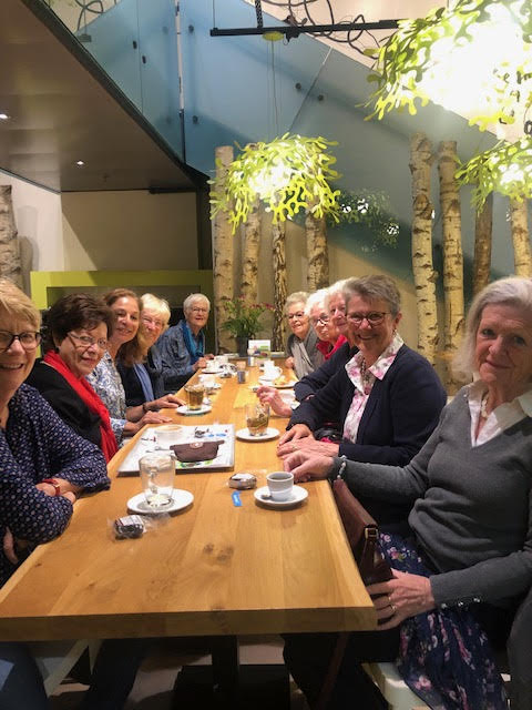 My bedroom balcony of the swiss house with the wisteria in full bloom and some of the lovely flowering trees in the area. A morning catching up with old friends from my walking group in Manora. Such happy times and memories of walks in woods, fields full of cows, cow bells, cow pats, and camaraderie over coffees.