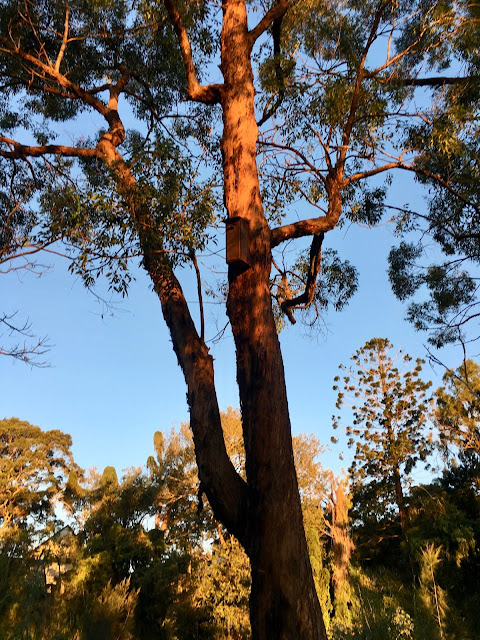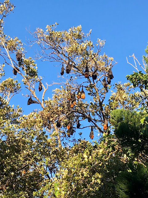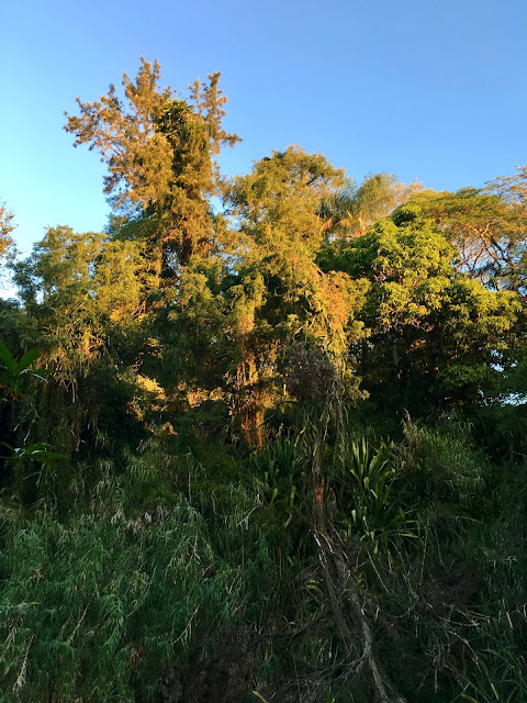 Evening light – sun burning on wood, leaves dappled with rays, calm in the sky, just before the night life kicks in. This walk took us to a bat colony. Hundreds of bats hanging upside down from the trees, all wrapped up and resting. Very soon they will start to stretch and fan their wings, ready to wake from their slumber, to take off into the sunset in search of fruit and berries.Their populations are decreasing and they can be noisy but they are very important for forest pollination and seed dispersal.