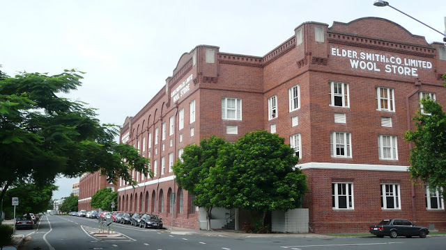 In 1870 Australia became the worlds largest wool producer. Wool made up a huge amount of Queensland exports and the many wool warehouses which were built in Teneriffe were there to receive the wool straight off the train which ran past the warehouses. Machines compressed it into bales and then loaded them onto ships bound for Europe. Wool was the basis for blankets, uniforms, underwear, coats and all types of clothing. The need for wool grew considerably in the two world wars. Wool warehouses dominated the landscape on the Brisbane River. At the time it was an industrial scruffy, neighbourhood with machinery and railway carriages dotted about. The warehouses were magnificent buildings of brick, four storeys high.The bricks were brought in from Belgium and used as ballast and then the wool would be exported back.