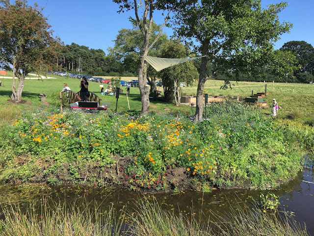 The little island full of wild flowers in bloom which Pete Morris put together over the last few months complete with bridge of love !