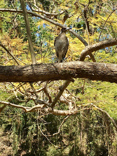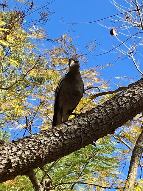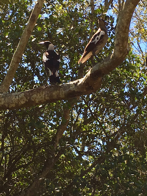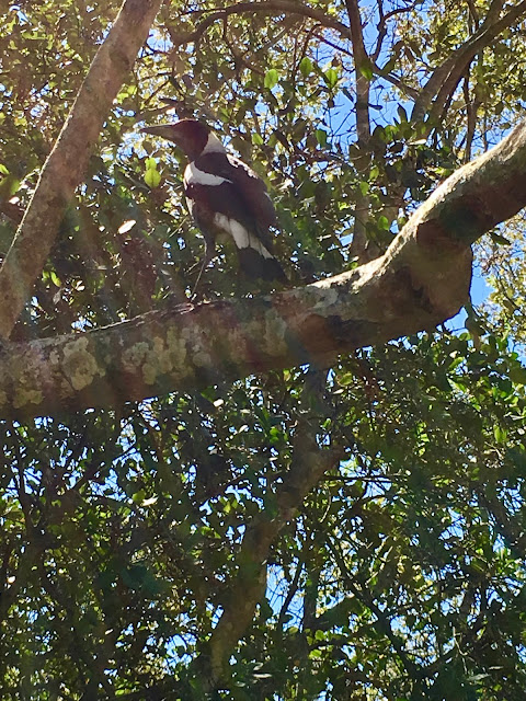 Today our discoveries took us to a well behaved kindergarten of Magpies and Currawongs.They were curious on the ground but also in the branches of the trees above. Their young colours are evident, their curiosity sparked by our presence and they looked down at us with no fear or worry.This Parliament of Magpies is so much more respectful then the British one at the moment as MPs hurl abuse and accusations against each other in the never ending discussions around Brexit. Maybe the UK MPs need to take a leaf out of the Magpies’ Parliament.