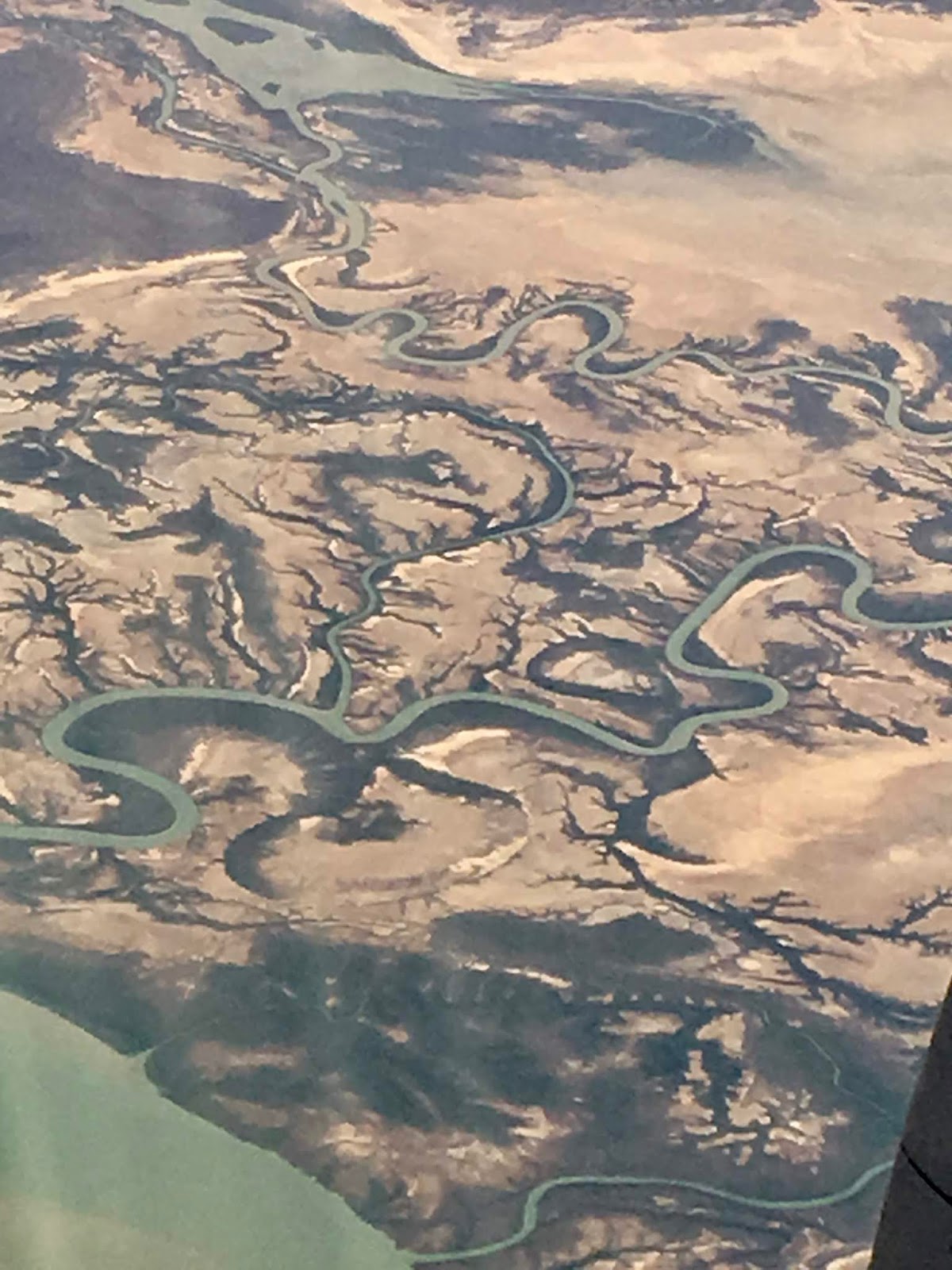 As we progress a vision of rutted browness. No other words to describe it really until we get to the gulf of Carpentaria and the rivulets there and the snake rivers which makes me understand Dreamtime better and the stories about snakes being mythical creatures. You can see why up here.