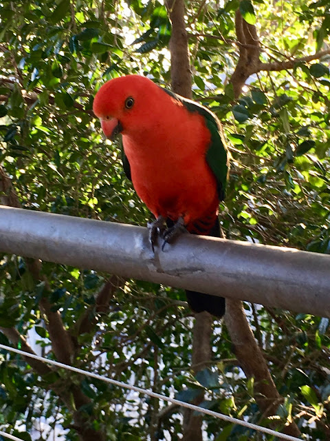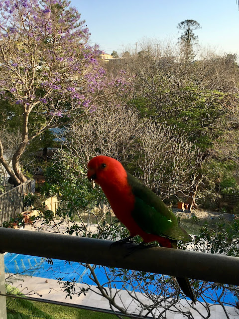 Its been several years since they last came by. I heard their gentler chirp from the kitchen. It was not the shrill shriek of the lorikeets who can be crowned most colourful but also most noisy. These King Parrots are a different level of beauty and calm.