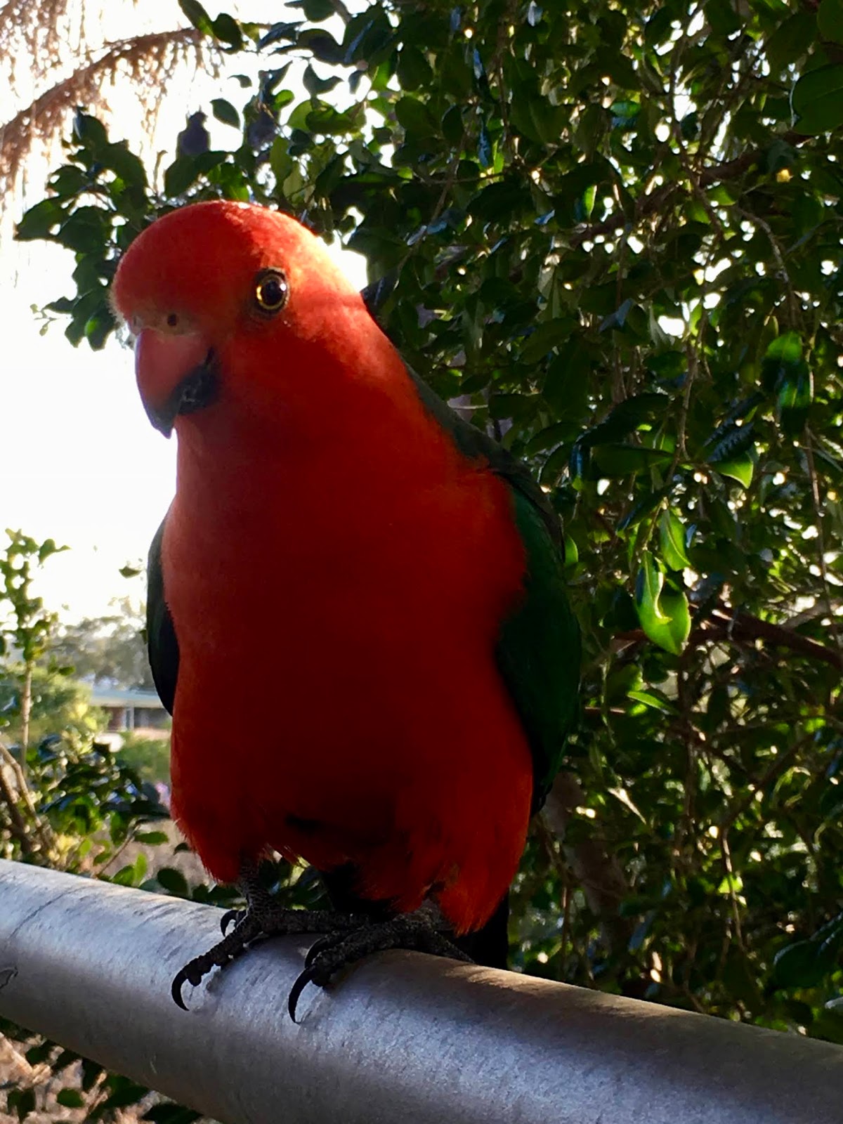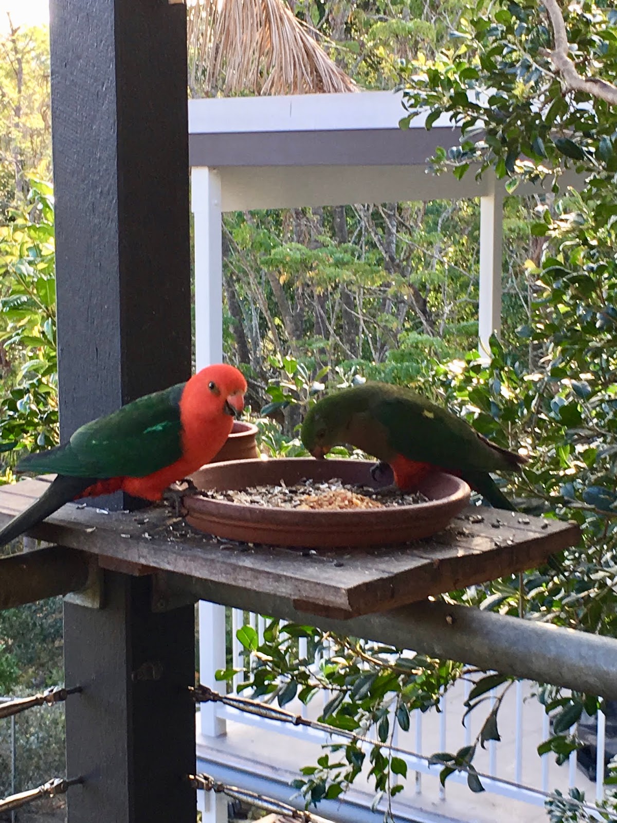Its been several years since they last came by. I heard their gentler chirp from the kitchen. It was not the shrill shriek of the lorikeets who can be crowned most colourful but also most noisy. These King Parrots are a different level of beauty and calm.