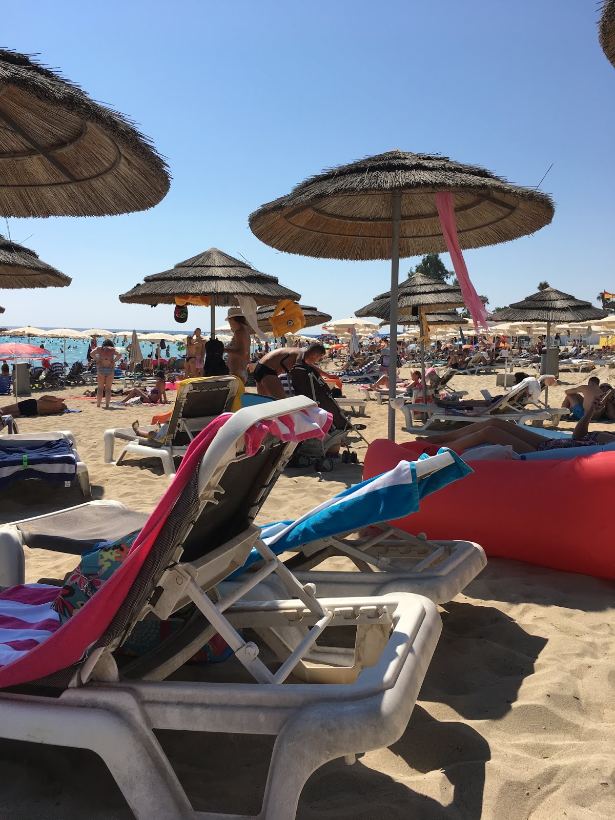 Friends kindly offered to take me there. The last time I was there was in the 1970s – Anna and I spent happy weekends on this secluded beach cove, which at the time had a few bungalows on it. It’s changed a little since then, three massive hotels and rows upon rows of sun beds and loungers. Er, not quite as secluded now but the water was just as welcoming and the sand was fine and white when you fought your way through the bodies …. 1st of October – Cyprus Independence Day…35C.