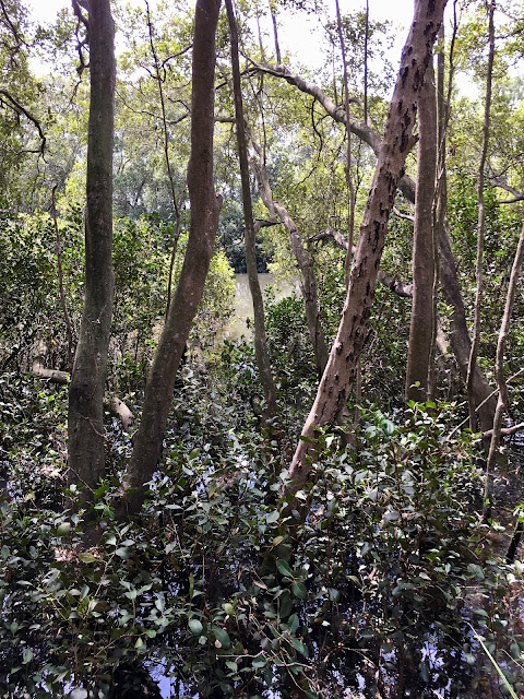Yesterday evening we had an electric storm with one of the biggest thunder claps I have ever heard. There was some rain but not enough. However the stream is swollen which meant the mangroves are in water again and this was just the kind of jungle jim that Dougall was looking for. He loved dipping in and out of the edges and slurping up the water.