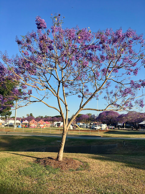 We visited Goodna. At this time of year the Jacaranda Park is awash with purple Jacarandas and is a joy. This weekend there is a festival going on in the park but some official might be in trouble…