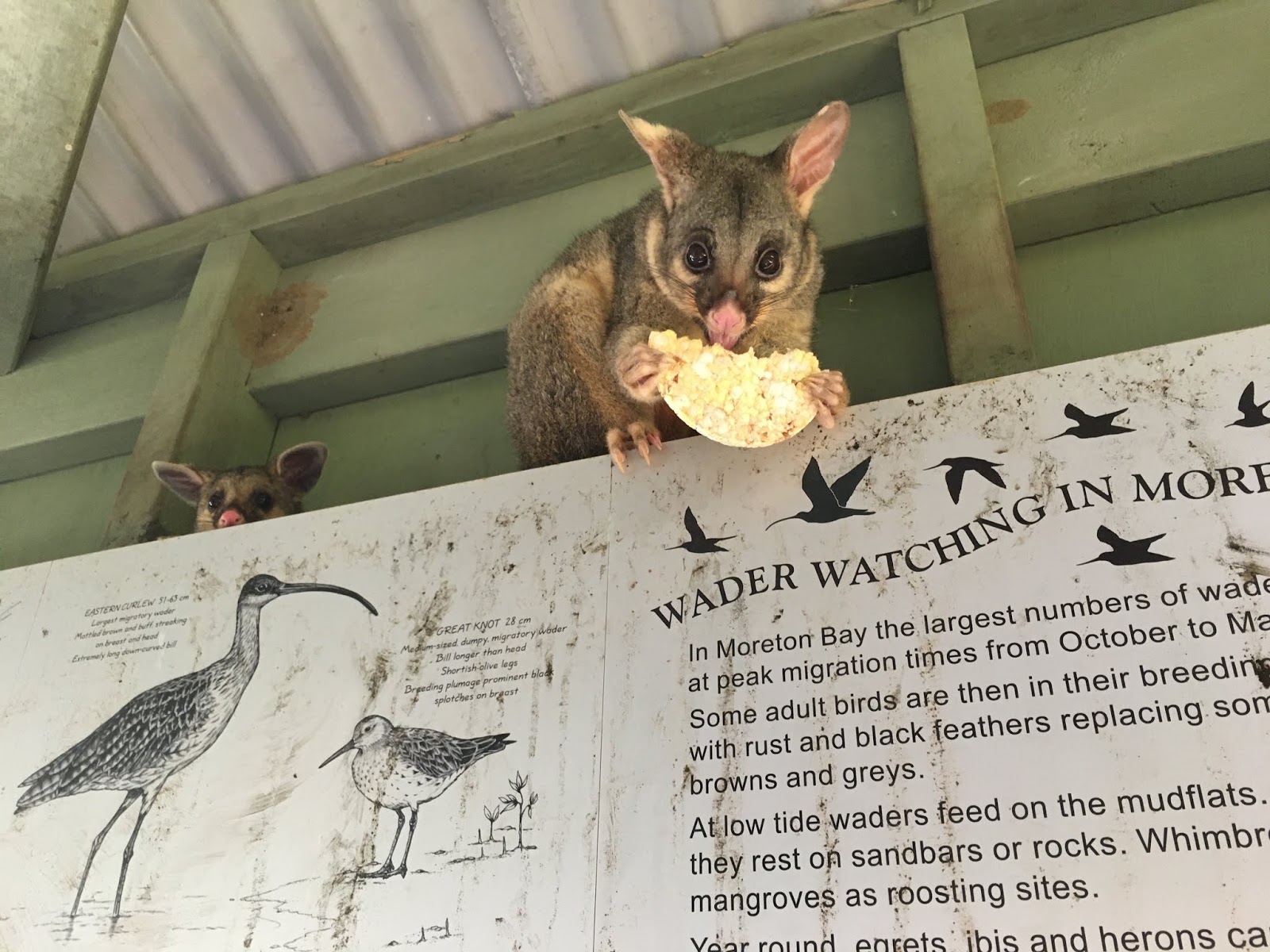 And then before we knew it we were met with this delightful little encounter with mum and babe. Now we have possums in our back yard but it is still a bit of a thrill to see them in the wild, and in daylight here. I called the man in to have a look and he told me his story. He is local and has been coming here for years. Loves the possum families and has seen several generations of possums living nearby in the trees. He occasionally brings them a corn and rice cake like today or a bit of fruit. He is very aware of the sensitivities of feeding wild life and we spoke about it at length but it is as much about giving them something from time to time as it is about checking that they are well.