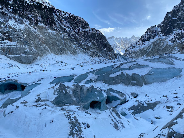 A short train ride up the valley and through the forest took us to the Glacier – Mer de Glace.