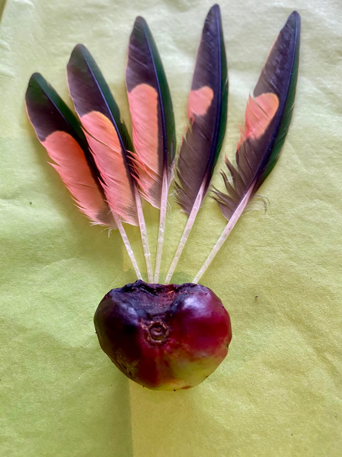 Sending you a natural heart of maturing hues and feathers for your flights of fancy.
