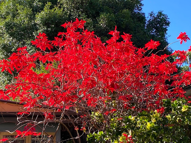 Nature is your safest go to and that is where I will be going. A good reason to do so now here is because the Poinsettias are flowering.This is the national flower of Brisbane and it is not often that I see it in such splendour. Don’t miss it. Its been Brisbane’s flower since June of 1930. It was a strange choice as it is neither a native of Queensland or even Australia but comes from Mexico and Guatemala. They were looking for a plant that was easy to propagate and this one excelled here. From June to August they flower and they are unmissable. The flowers are actually bracts- highly coloured leaves around the small green flower in the centre. Emily H Bulcock wrote a poem about it called “Brisbane Poinsettia City” and it was published in 1930. Her words could not be more relevant to now so here it is for all of you.