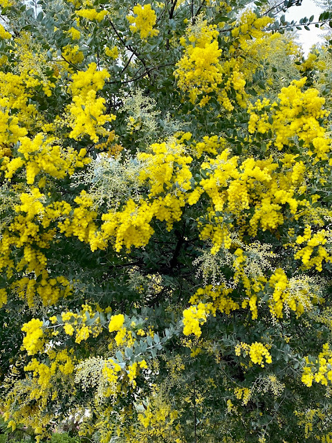 They say Queensland is beautiful one day and perfect the next. Well yesterday it was awful but today it is perfect once more, so off we went together for a walk and we found the first flowering Queensland Silver Wattle tree looking absolutely glorious – this photo is for you Janet Pollard.