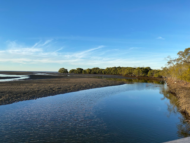 Sunday’s outing was to a favourite destination. Nudgee – that corner of the coastline which is half river, a lot of mangrove and a favourite with birds. It is an area of tidal flats, mangroves, salt marshes and grass lands as well as some forest trees. There were very few birds on this visit. There is always a lot to see so we enjoyed the boardwalk and the views. We kept hearing one bird in particular. Finally we were able to get a good view and a good listen to this brown honey eater.