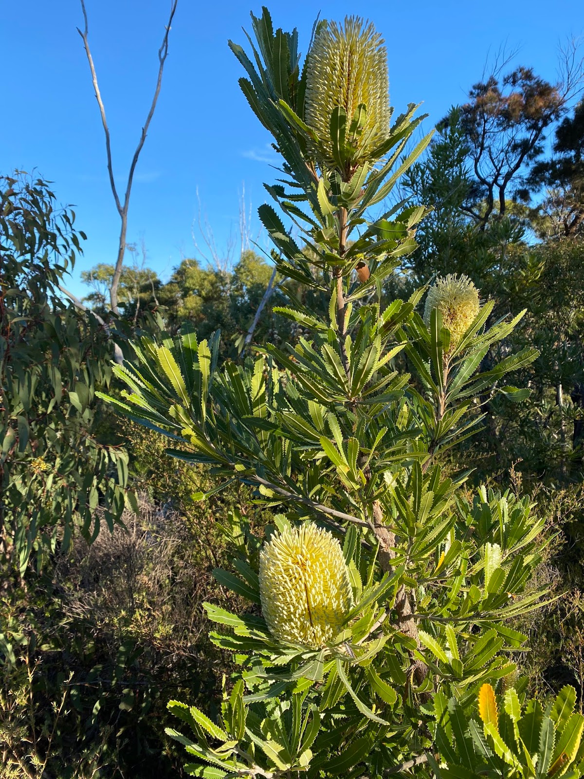 The unmistakable and amazing Grass Trees which take 20 years to sprout above the ground and then produce these flowering stalks. We found one with a distinct bend to it and we wondered how that happened.