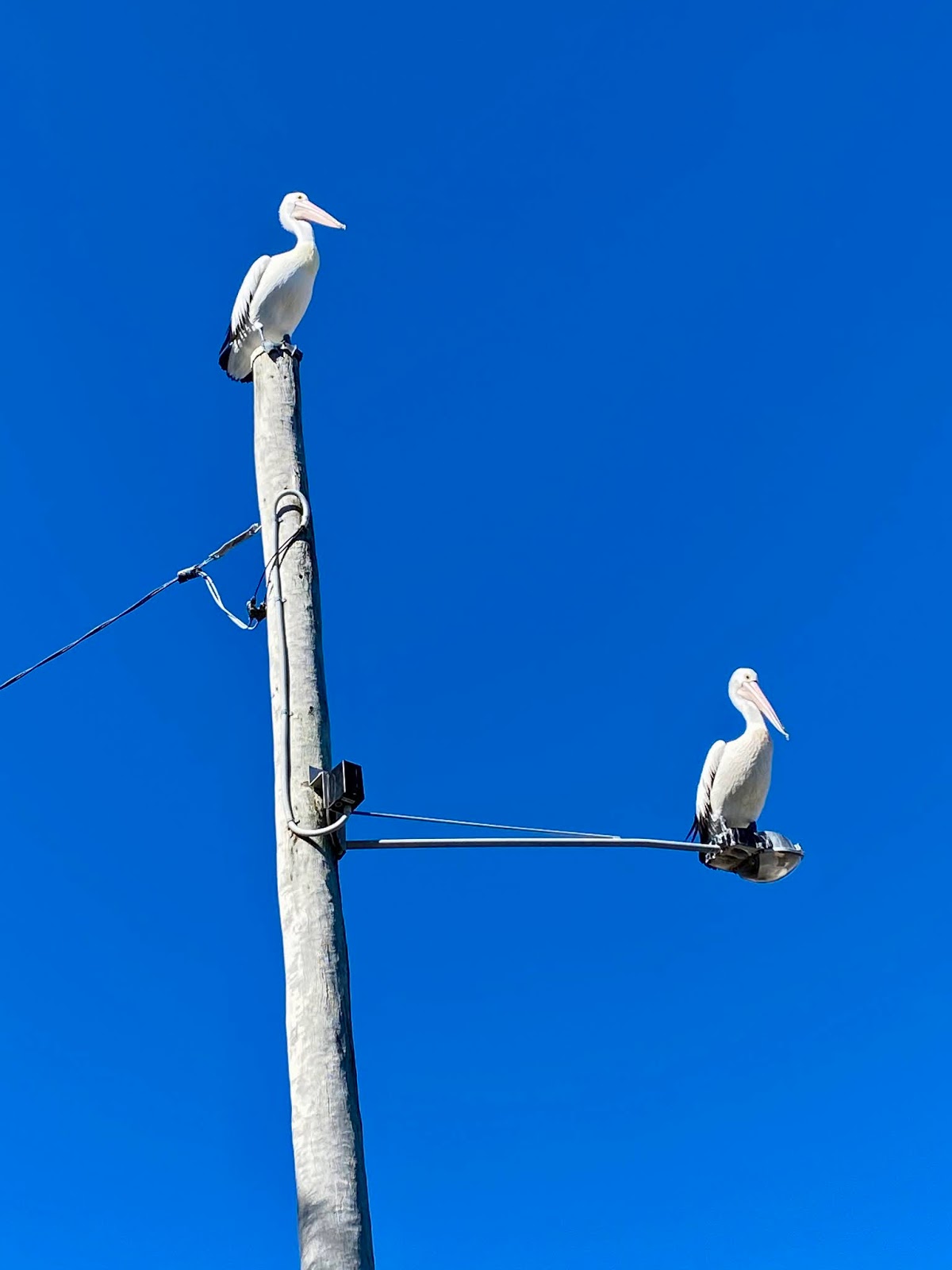 Finally onto to Amity Point, a great fishing and camping spot where the sand is red and the sea turns golden. We saw a lot of fishermen catching bonito, a type of tuna, and were amused to see these two waiting for their lunch.