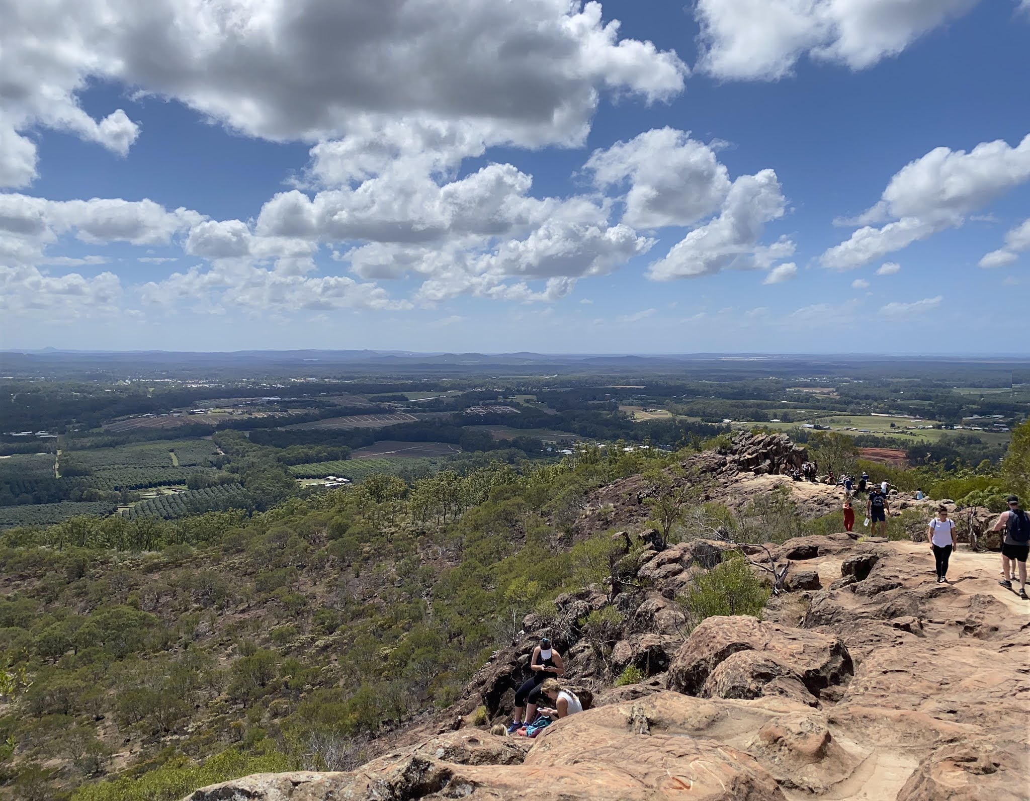 A weekend getaway to recharge, celebrate and explore all within 100 kms of Brisbane. Our destination the Glasshouse Mountains a strange and impressive site named by none other than Captain James Cook in 1770 who took one look at them and thought they looked like the glass furnaces of Yorkshire – I have no idea if they do or they don’t but one thing is for sure, they are noteworthy. They are intrusive plugs – the remnants of volcanic activity that occurred in the area some 25-27 million years ago. Molten rock came up and solidified as hard rock to what we see today a vast plain with these plugs poking up. They are Heritage Listed: