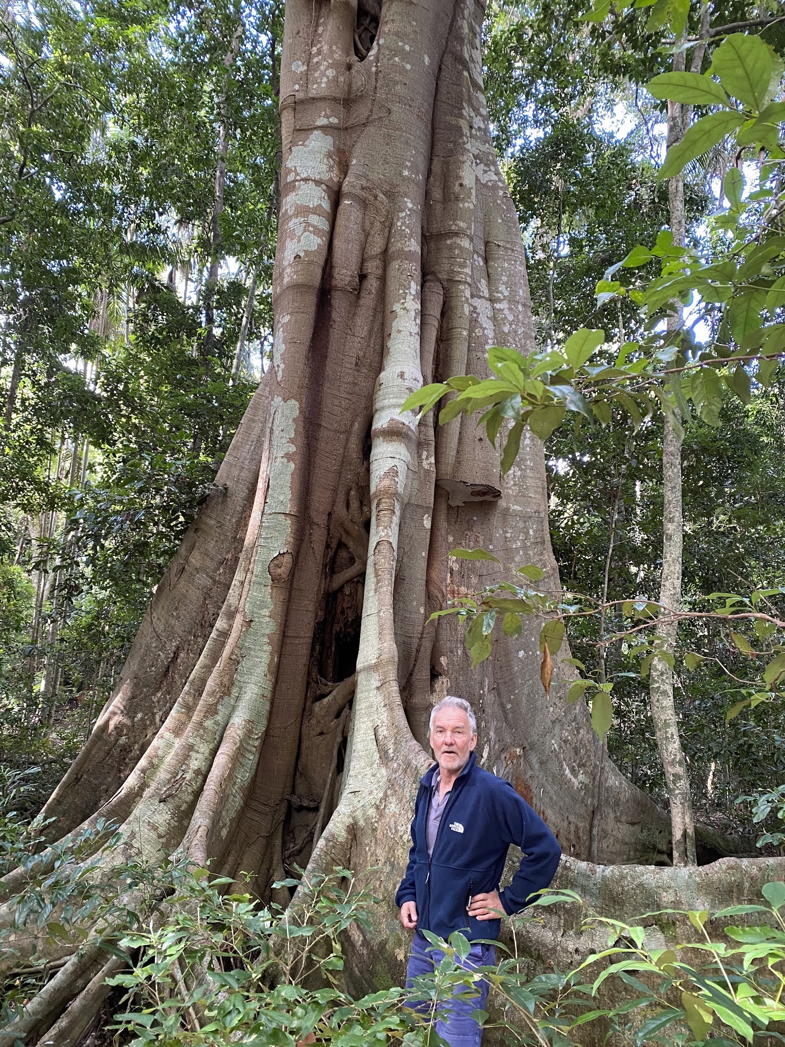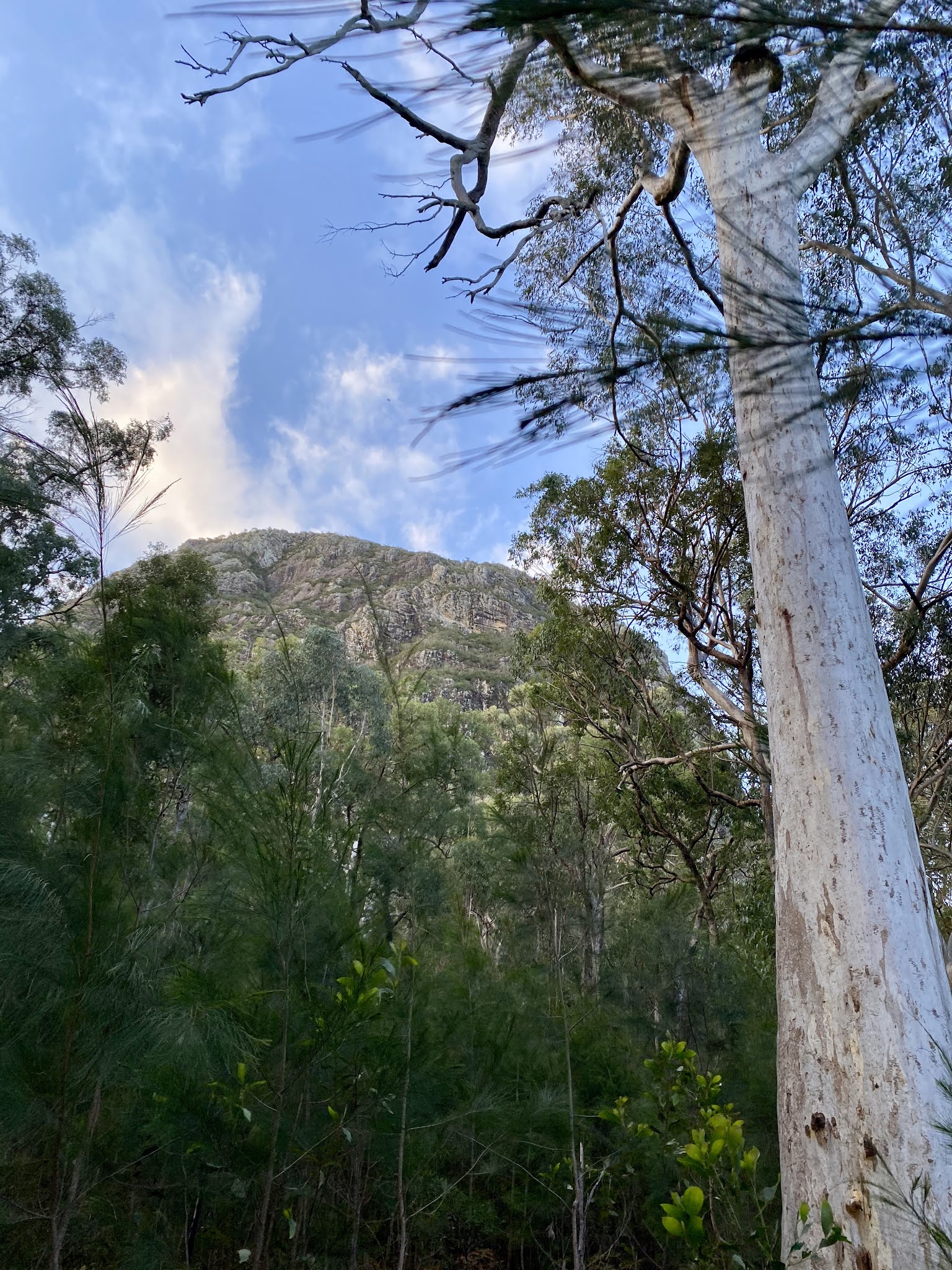 We walked around the base of Tibrogargan, we climbed to the top of Ngungun and Beerburrum and went on several other river walks in the Mooloolah National Park Jowarra section. The forest was largely eucalyptus and not very dense, interspersed with some grand old trees that rose majestically from the ground and whose tops we could barely see. The views were magnificent and along the paths we came across spring flowers and flowering wattles.