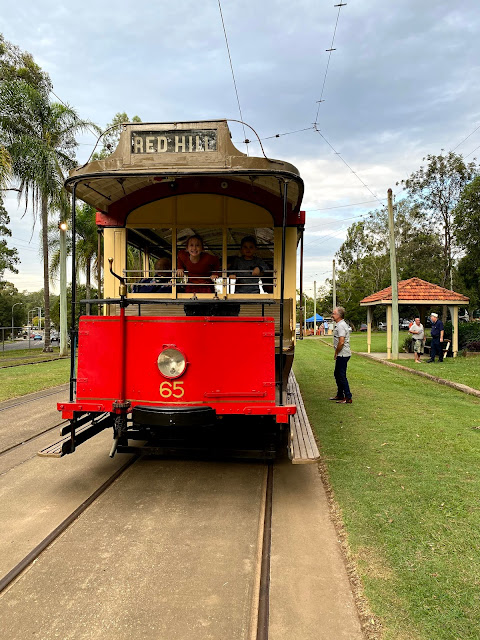 It is also a tribute to the steadfastness of Grandpa Gilks, a devoted partner to Nancy. Hard to believe it is almost a year since she left us on the 27th of April 2020.Their marriage equally long lasting and loving. They even resembled the royal couple and Nancy was often referred to as Queen Nancy. He had a fine mind and spent a lifetime in service to British Transport as their doctor. He loved Route Master Buses, Trains and Trams. So we shook off our sadness and headed into the sunshine on a beautiful autumnal afternoon to the Tramway Museum in Brisbane. We took rides on the Red Hill Line which came into operation in 1921 and was withdrawn in 1940. The tramway system in Queensland was started up in 1897. Forward thinking, not much attention to health and safety, but a novel and great way to travel around the city. The trams came into the city and an article in the Courier Mail on the 22nd of June 1897 is quoted as saying :