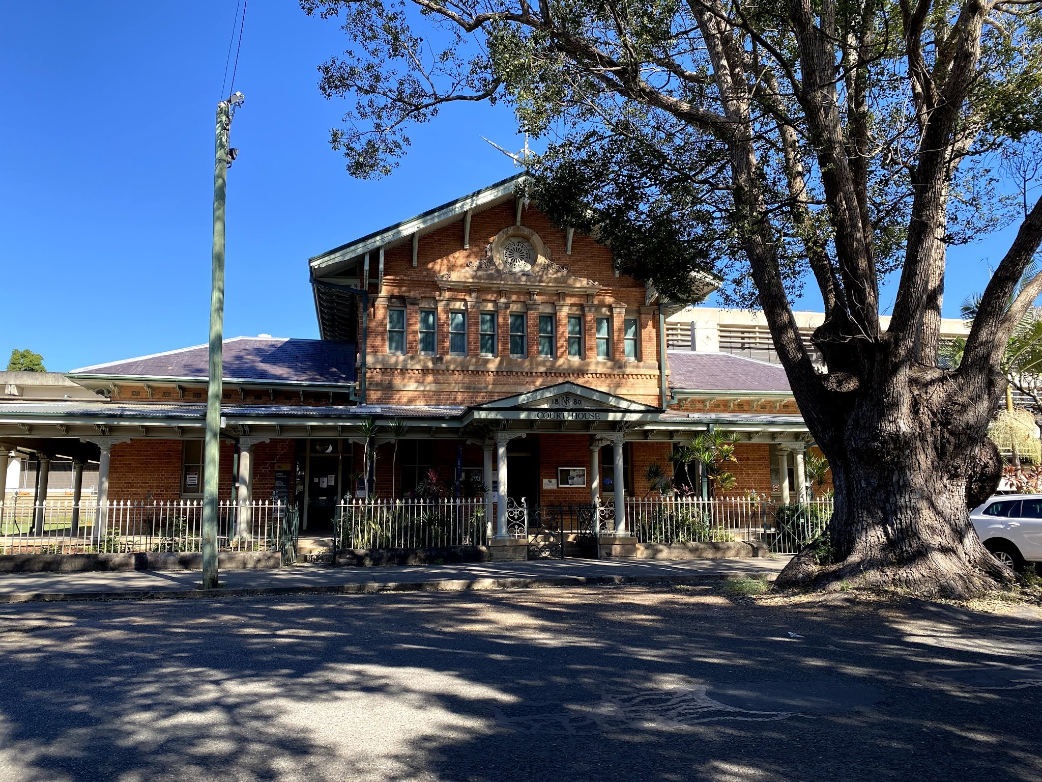 We turned inland travelling through some other very tall eucalypt forests of Orana State Forest. Beautiful rolling hills, many homesteads and paddocks, horses and cows. We headed in the direction of Nana Glen towards Grafton an old and established town on the Clarence River rich from the timber trade. Notice the magnificent tree in front of the Court house and the original site of the Police station dating back to the 1870s. Grafton is famous for its flowering Jacarandas and has a Festival to celebrate them in Oct – Nov when they are in blooming. It is also the place where the first hand glider was invented.