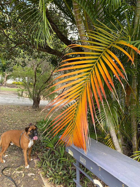 It’s been a busy week with Brisbane Festival putting on some fabulous shows, https://www.brisbanefestival.com.au/ and Book group up and running “live” once more. Both joyful and vibrant and the spring sunshine just adding to the mix. No better way to end a busy week than to take Dougall out for a long walk. It’s been a while so I was eager to see what has flowered and changed in the area. It was not long before we came across this beauty.