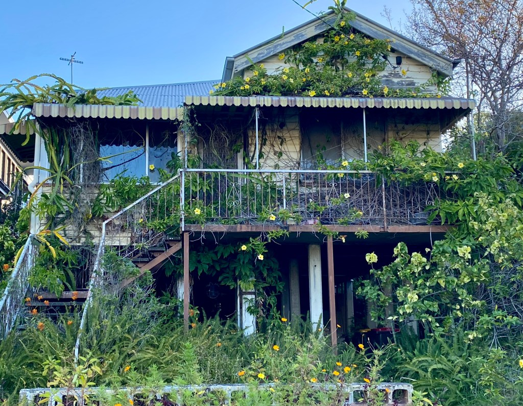 On the walk a house I am always intrigued by. Nature is gradually taking over. Is there anyone home I wonder? What do the neighbours know?
