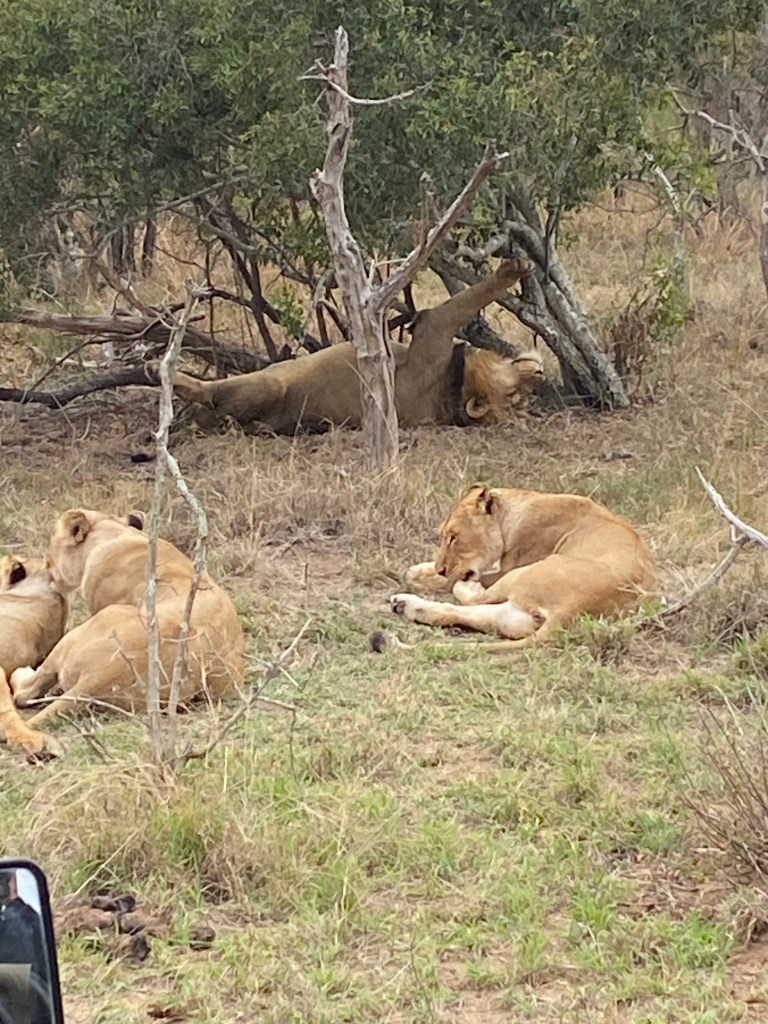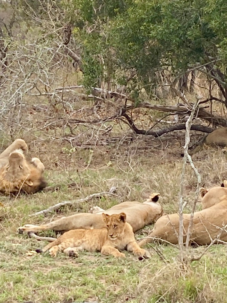 On our game drives we had the good chance to come across a pride of lions. Two males, six females and a cub. We saw them on two different occasions. On the one sighting they were quite sleepy. Well fed perhaps so not much reason to move. On the second occasion they were also lying in the shade but we watched the cub playing, jumping on the females and on a male. Both their responses were so touching and caring.