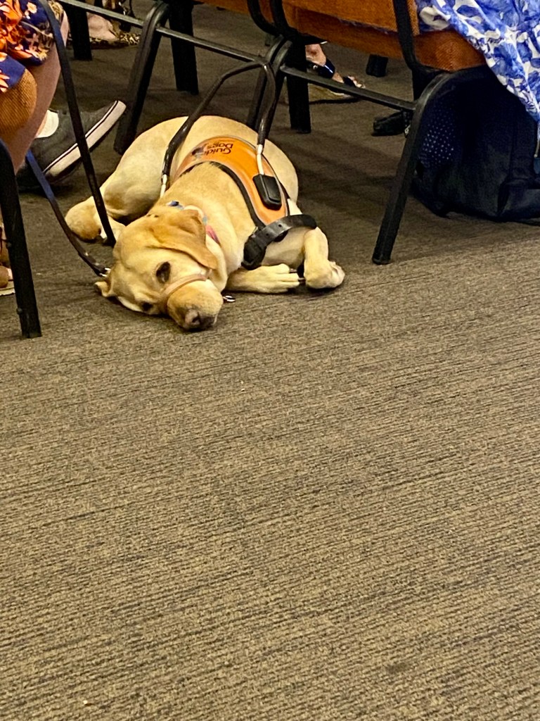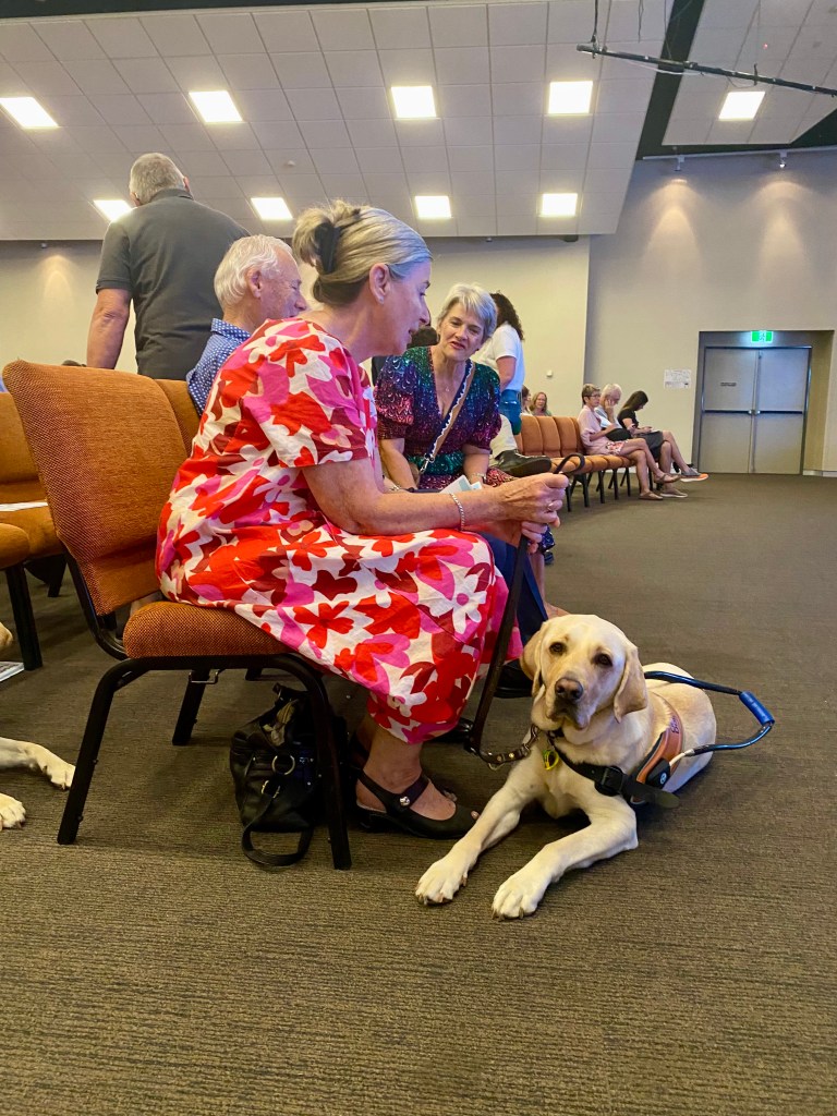 The Governor General of Queensland her Excellency the Honourable Dr Jeannette Young AC PSM arrived in her official car and we all filed into a large hall. The handlers and the Graduates were all there, handlers on the chairs, graduates by their feet.