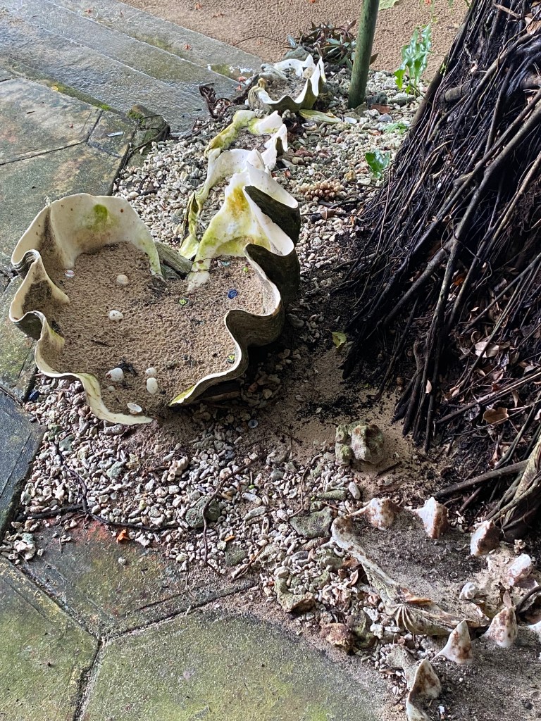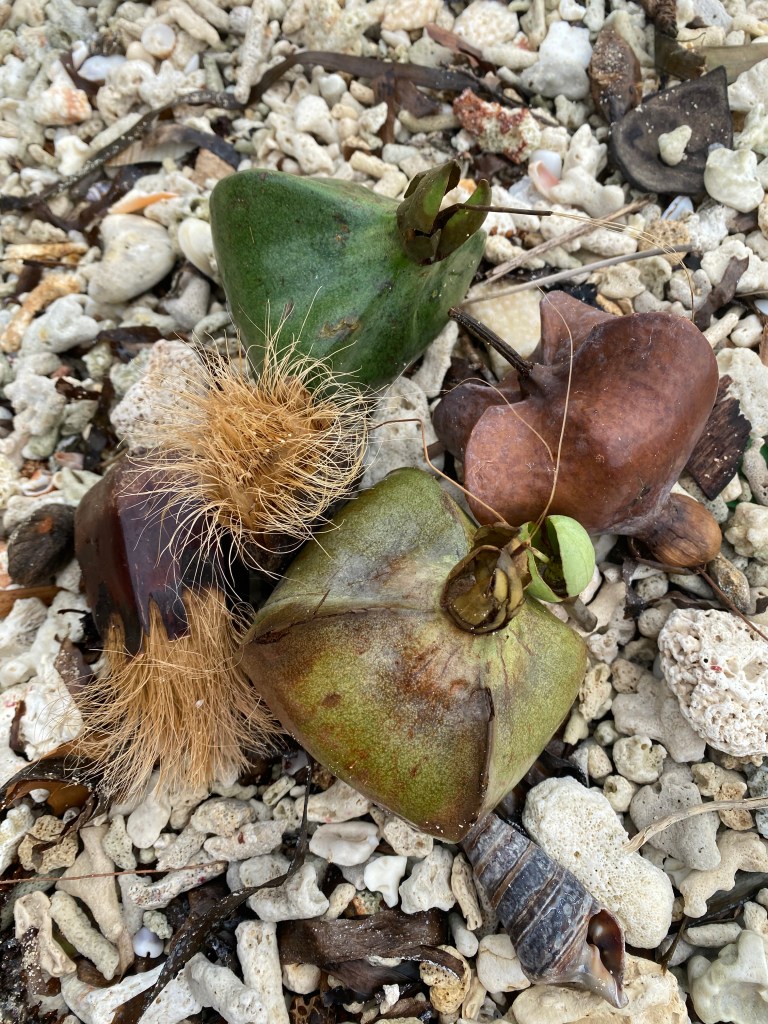 While waiting to join the boat I walk along the beach – covered with broken coral, seed pods and the most beautiful shells. I meet Agatha and Sebastian on the jetty and they show me their catch of the day.