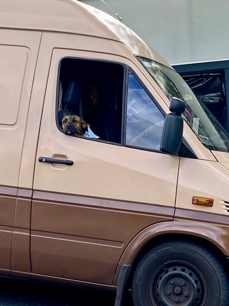 My treasured moment of this day is this sighting. An accessorised doggie and van.
