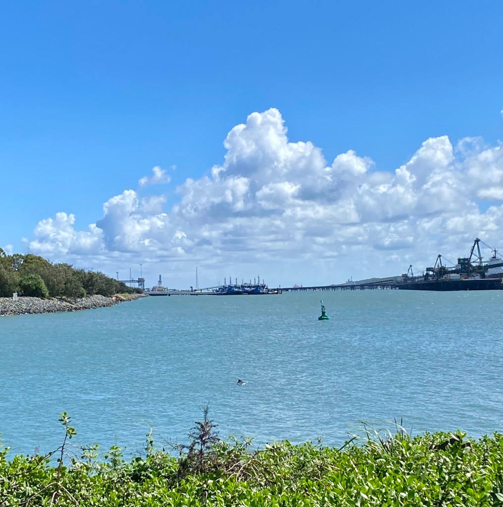 My friend Martin said “I found Gladstone one of the most uninspiring places ever in QLD. It simply has nothing to commend it and by 5.00pm everything has shut down for the day – except a few of the very average restaurants. I would be interested to hear if you found anything inspiring”.So I am hoping to find something that he might like. The port with a dolphin just visible in the river?