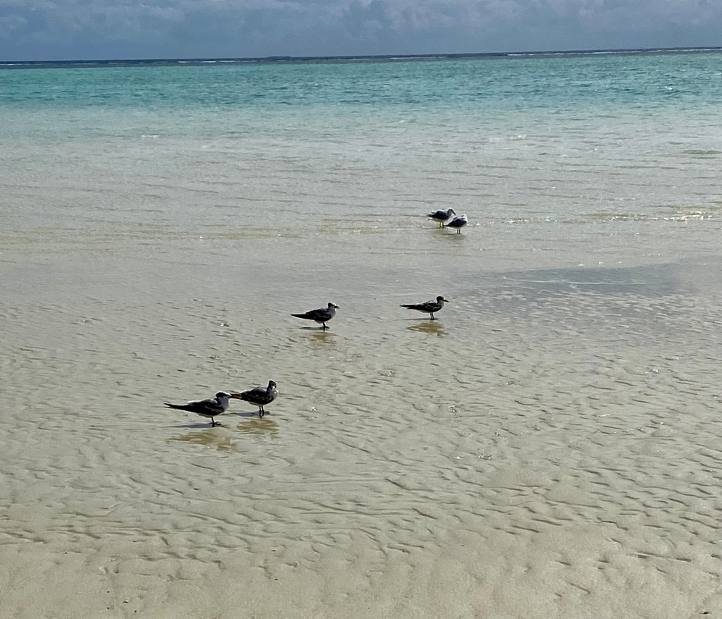 There are a few, crested terns, brown boobies- here are a few crested terns on the beach.