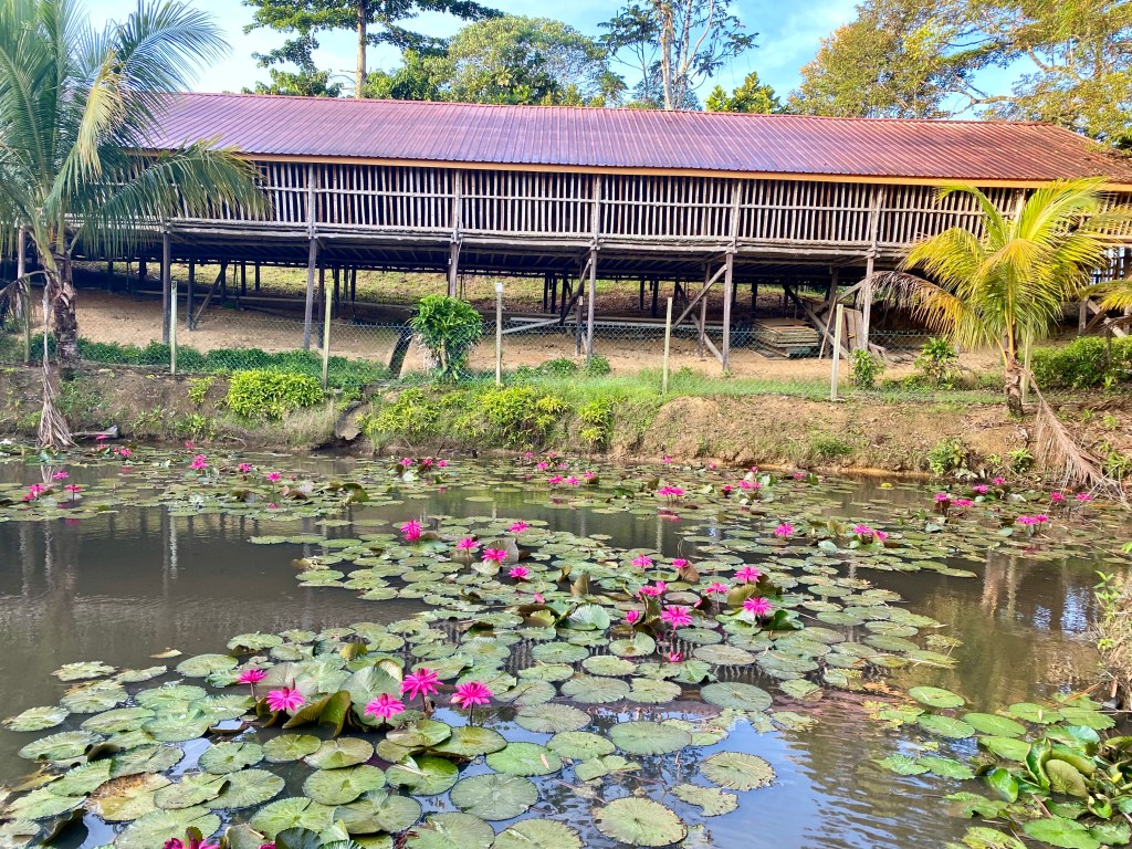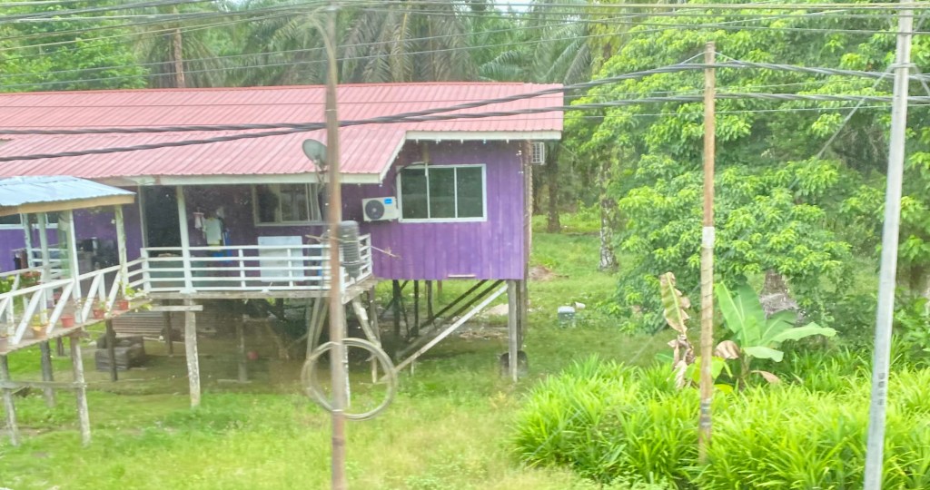 We travelled around this beautiful country with its lush vegetation, palm oil plantations and tea plantations through villages and towns. In the tea plantation we visited, there was a traditional long house for the workers.
