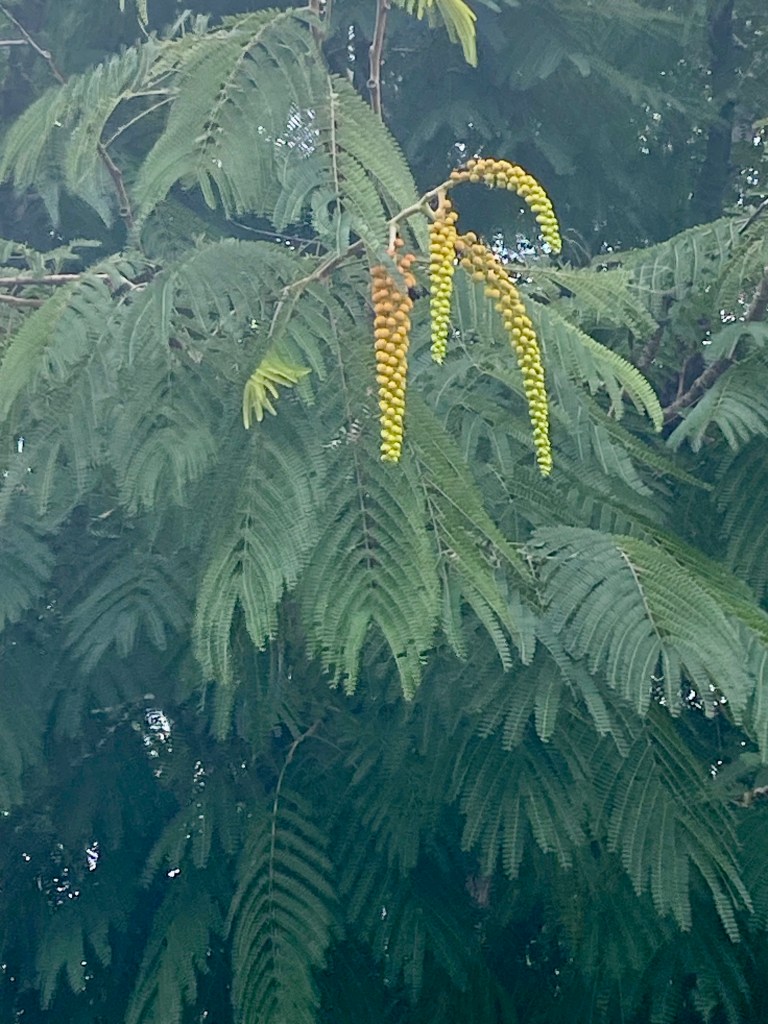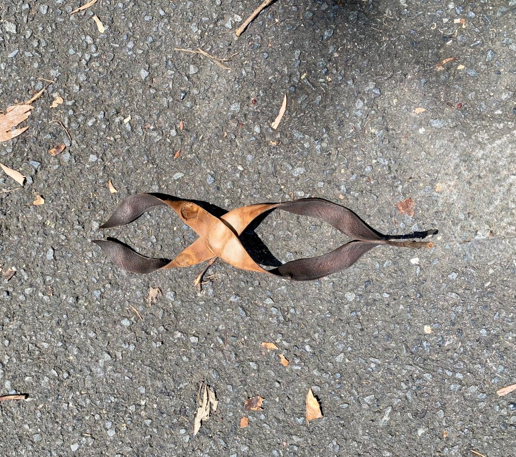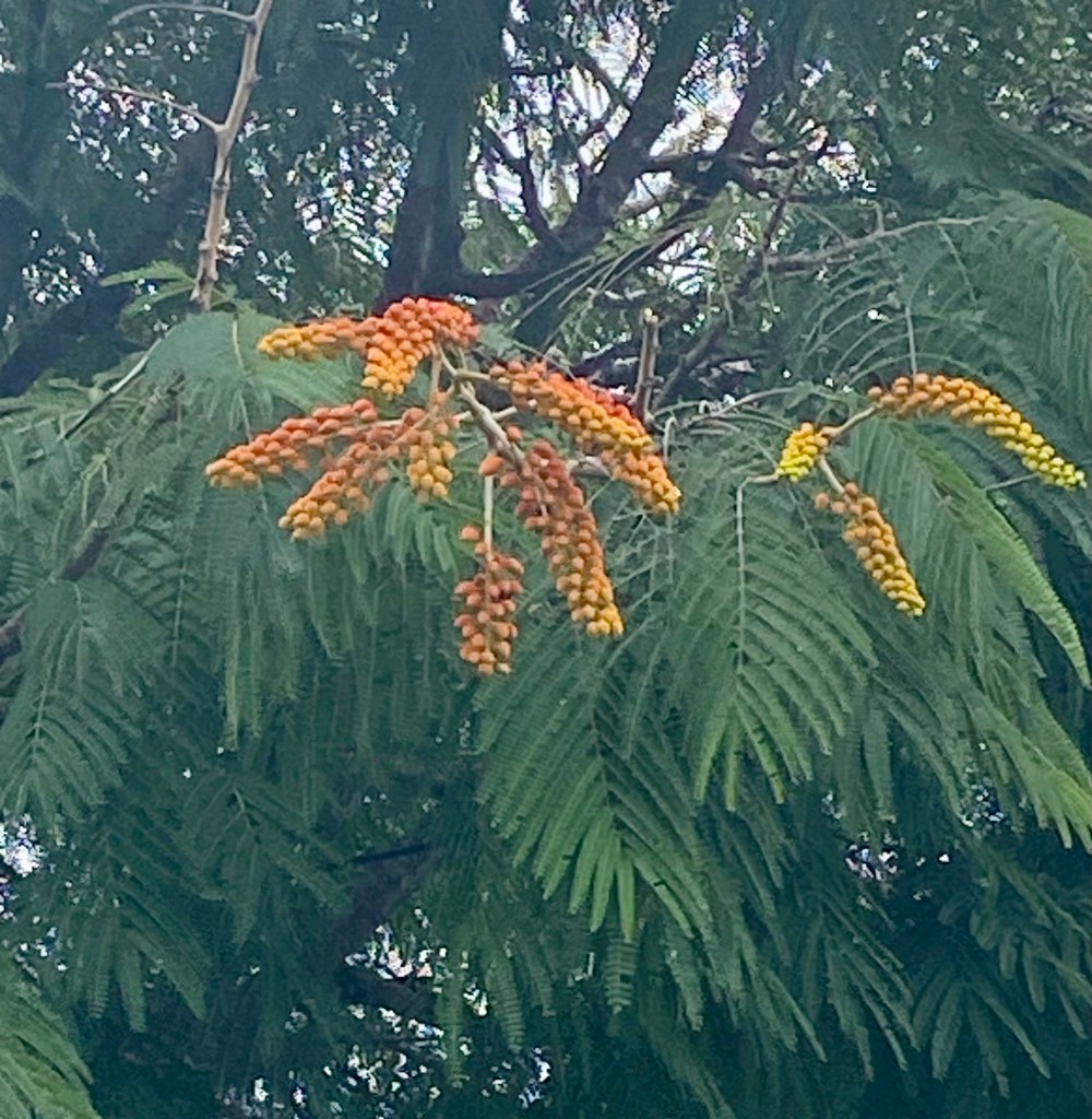 The pendulous fruit of Colvillea racemosa aka Colville’s glory. The tree is particularly known for its bright orange flowers that grow in large cone or cylinder shaped clusters.