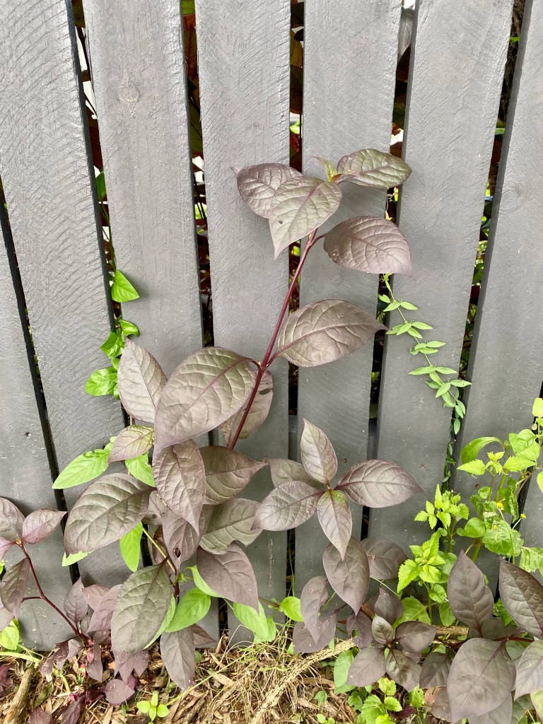 A garden plant that matches the tone of the palette it is up against.
