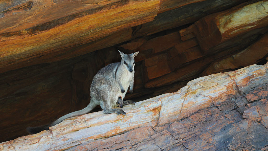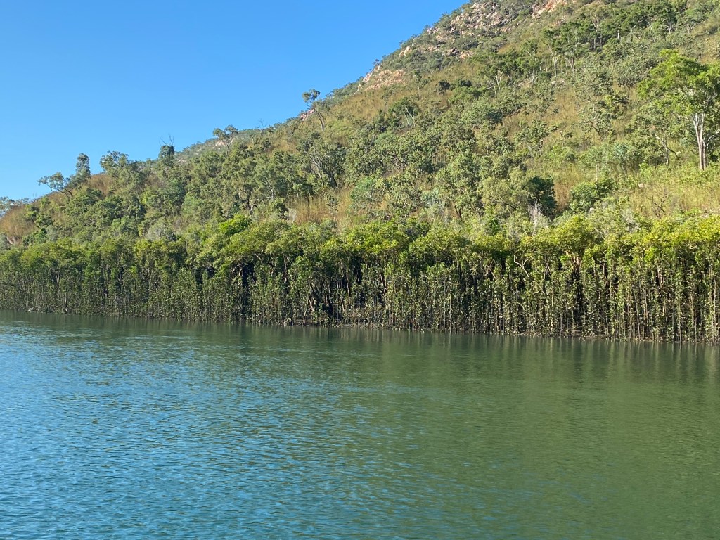 A short eared rock wallaby came out to say hello, a Brahmini kite flew above and very orange fiddler crab lay on the muddy banks ready to be picked by birds of prey. Mistletoe hung in trees, ghostly gums seem to grow out of the rocks.