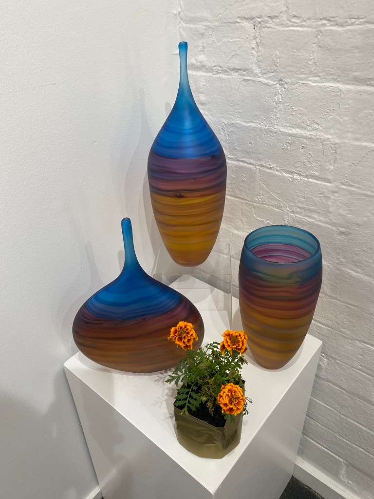 The gallery always houses interesting art work -I was totally taken by the Gordon Studio Glassblowers. The ones below evocative of a swirling sea and sunsets over the sands.